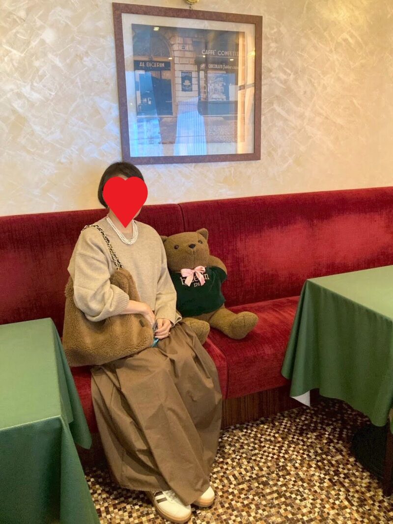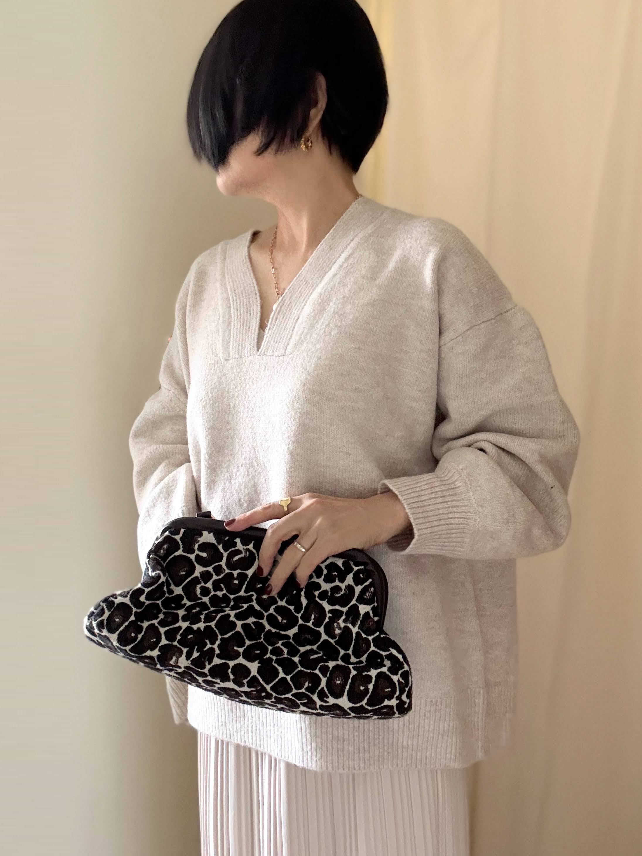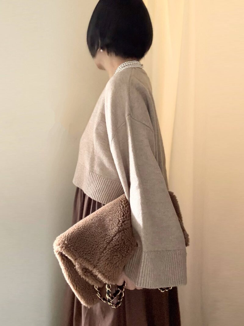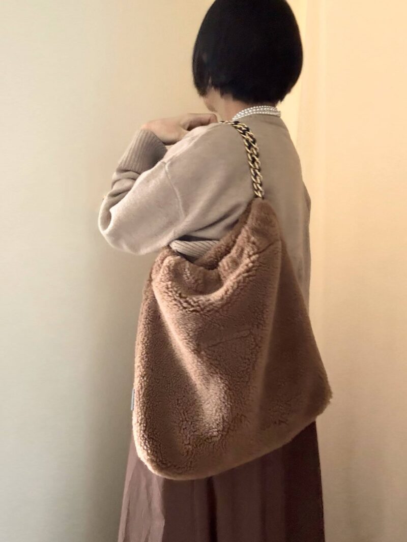 バッグも柔らか系が持ちたいですね。モフモフの手触りが楽しめるviolad’oro (ヴィオラドーロ)のエコムートンのバッグ。クラッチ持ちが出来るのが好き。
