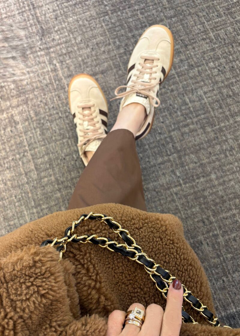 足元。このコーデ、先日買ったadidasのガゼルが合い過ぎた。