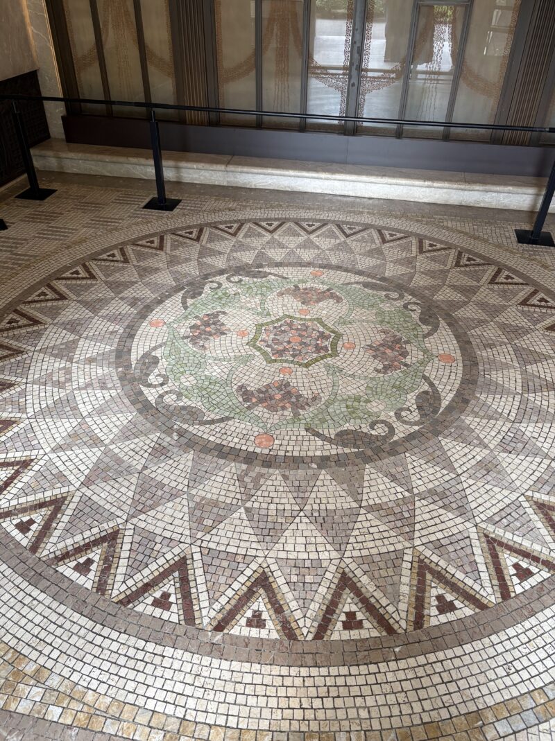 館内と展示物は写真不可だった。外観はOK。外ポーチの美しき床よ。