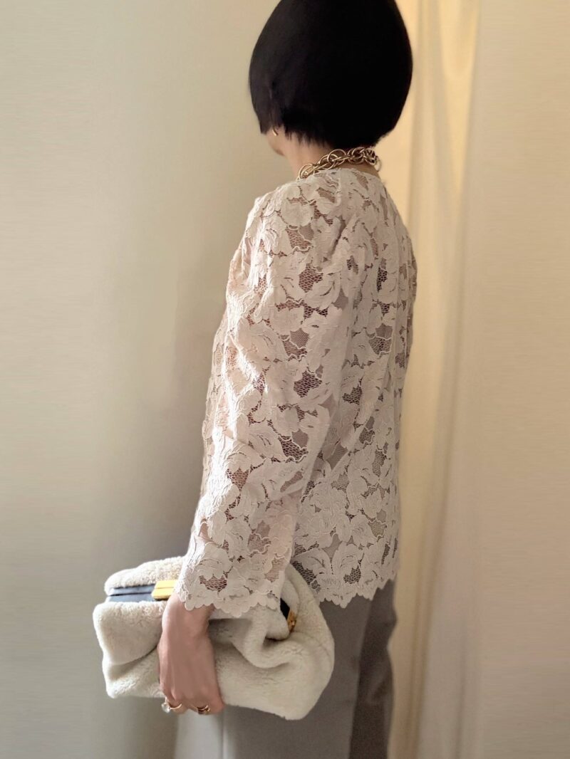 レースのブラウス、想像以上に難しい。攻略が難しいアイテムだ。そもそも自分に似合わない服なのかもなーという気もする。それでも食い下がる。もうちょっと粘る。似合う似合わない以前に自分がこの服への愛があるんで。(意味不明)