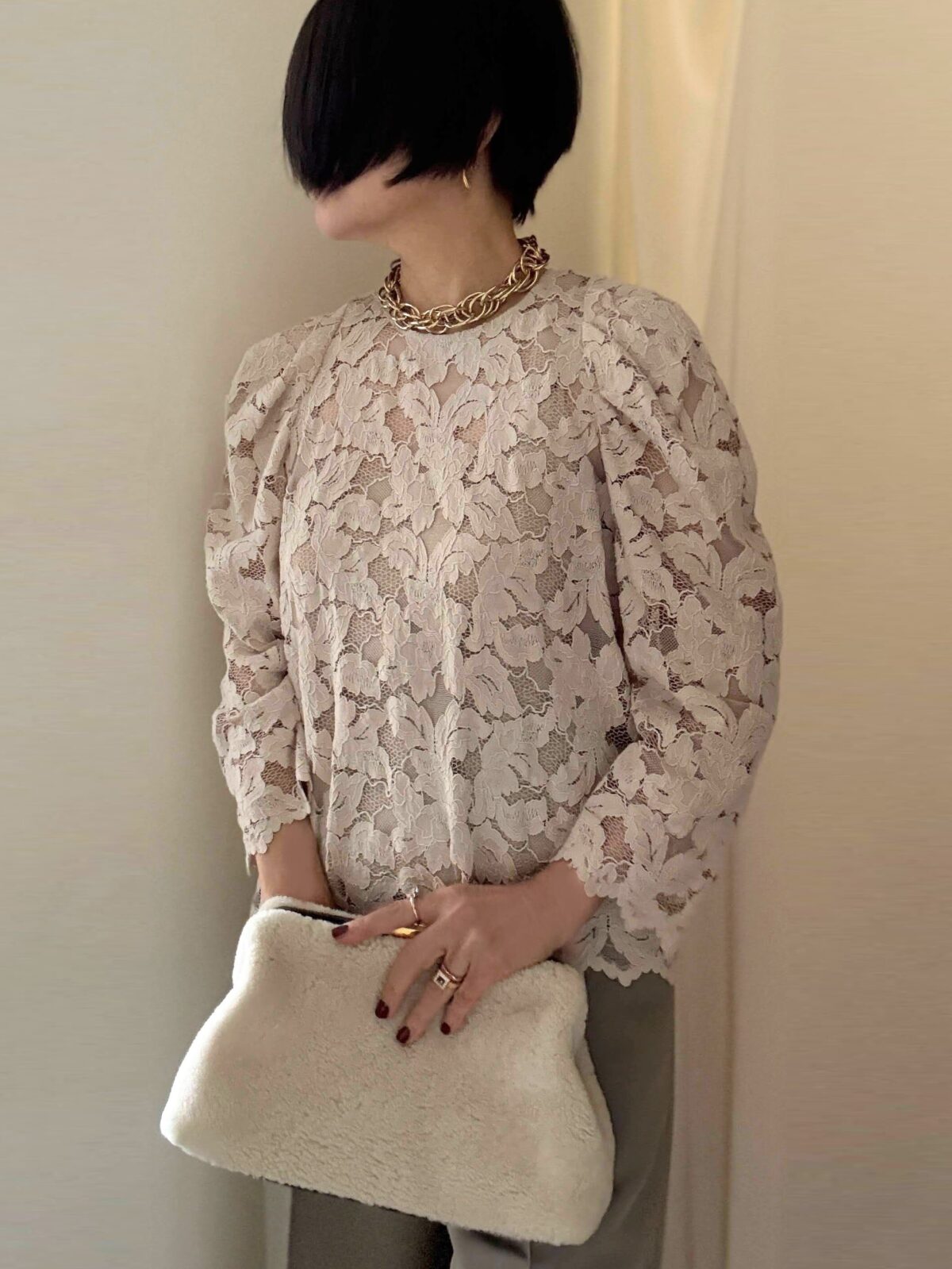 レストランでの食事の予定がこの秋まだまだ続くので、引き続きこのレースのTOPSでコーデ組んで攻略してみる! 足元が重いブーツになればバランス取りやすい気がする!