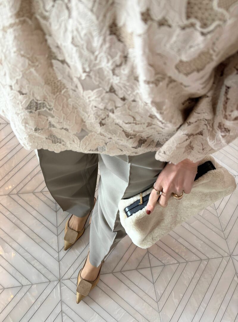 パンツでTOPSレースブラウスの甘さが中和されたかな?と思ったけど、なんかピンと来ないような気がした・・・・。