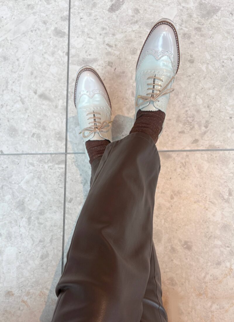 このLuca Grossiってブランドはイタリアのブランドみたいなんだけど、ミラネーゼの端正なコーデって感じがしてツボ。ヒールパンプス履かなくなった私にとってスニーカー以外の選択肢、端正靴としてひも靴は欠かせない!