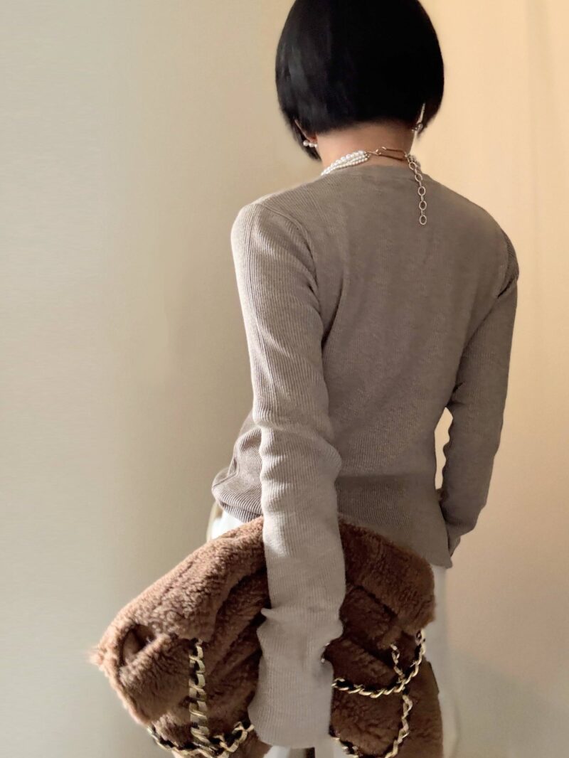 最近ニット類TOPSは詰まった丸首が断然好み! ボートネックとかVネックとか胸もとの処理がメンドクサイんで・・・