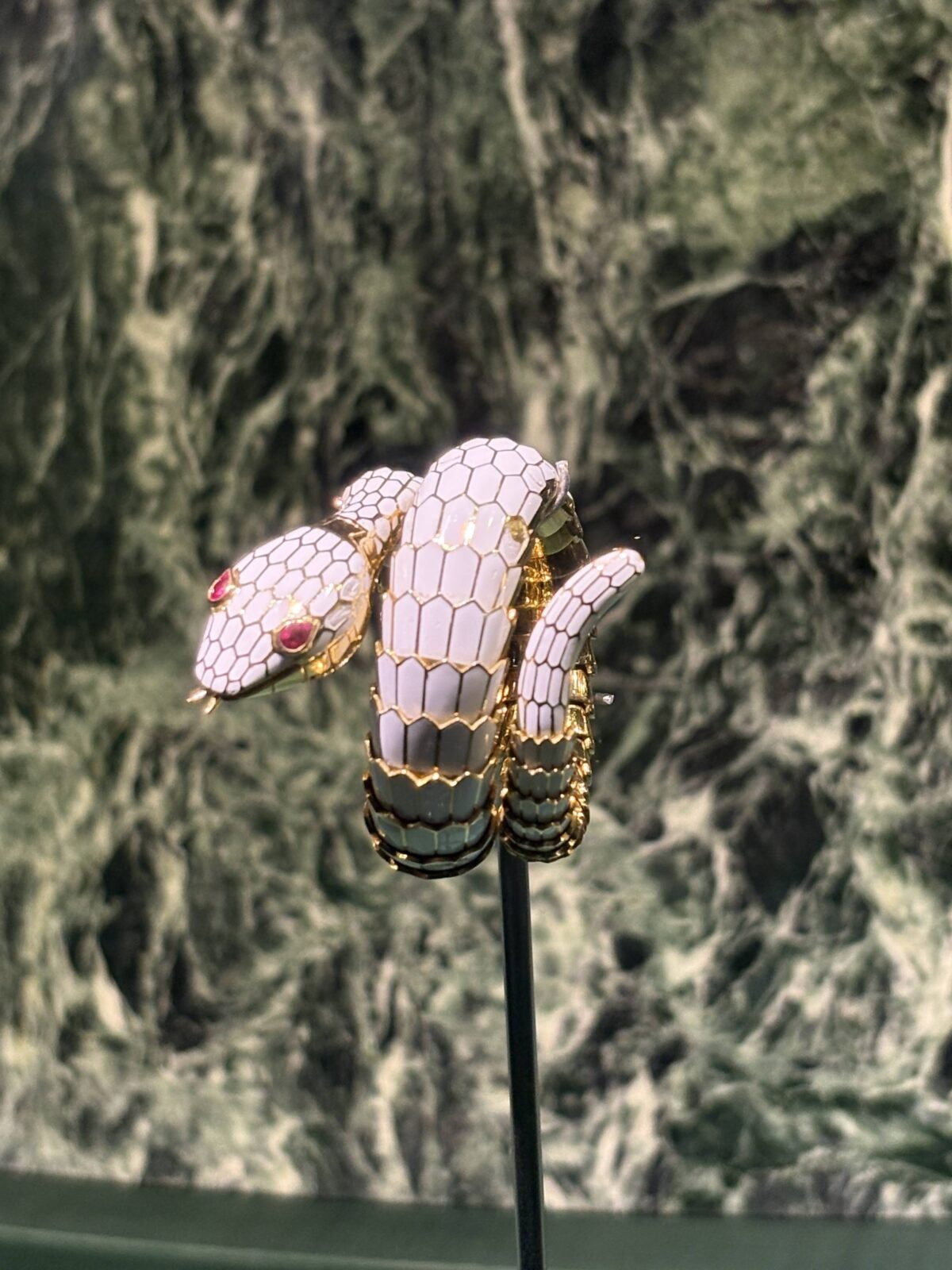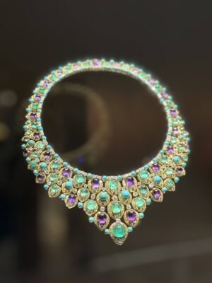 ブルガリは色石へのリスペクトがあって鉱石として価値が高くないものでも積極的にハイジュエリーに使用してきたのだとか・・・ペリドットというオリーブオイルの色のような石が綺麗だった。