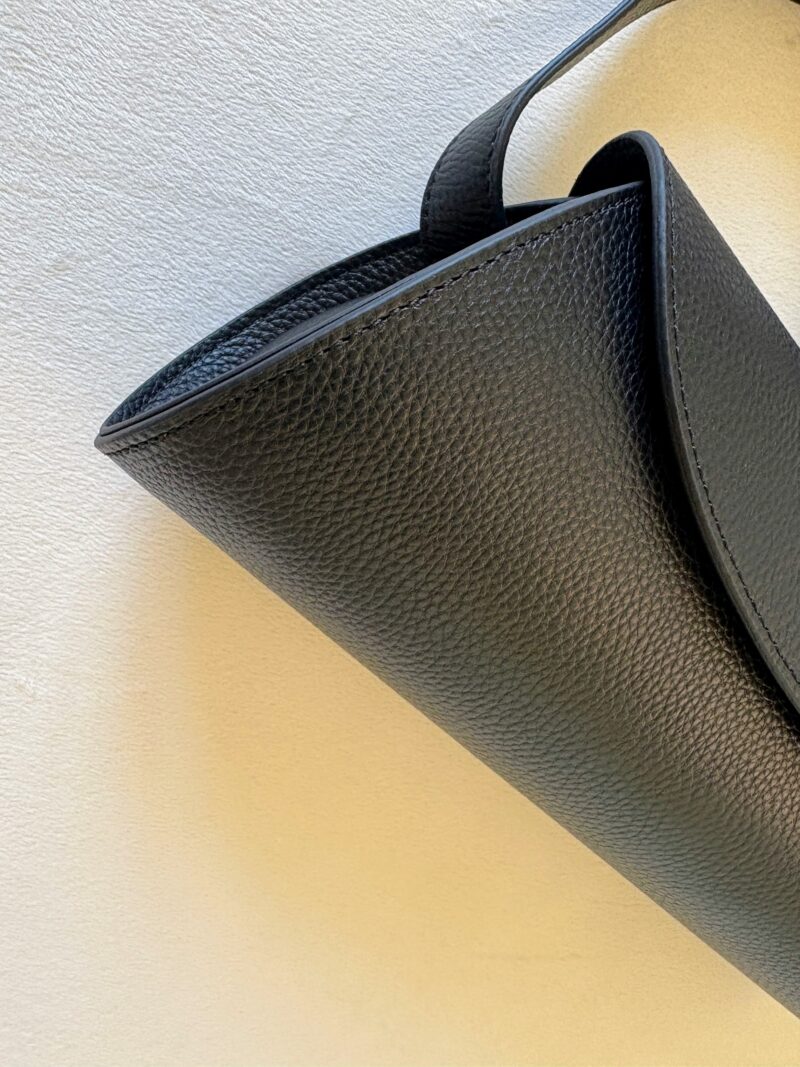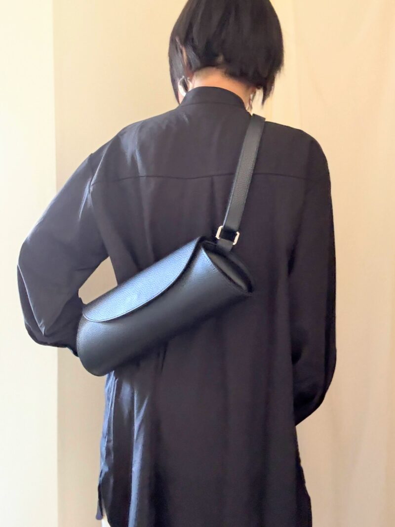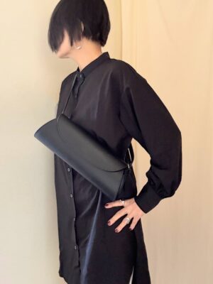 今日持ってる黒のバッグはこのシンプルさと横長の形に一目惚れ。