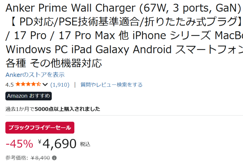 Ankerの充電 3ポートタイプが半額近く安くなっていたので即買い!8,490→4,690円!