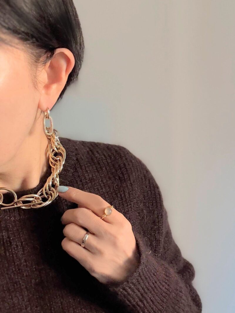 bagのGOLDのチェーンとリンクさせてアクセサリもGOLDチェーン系で。