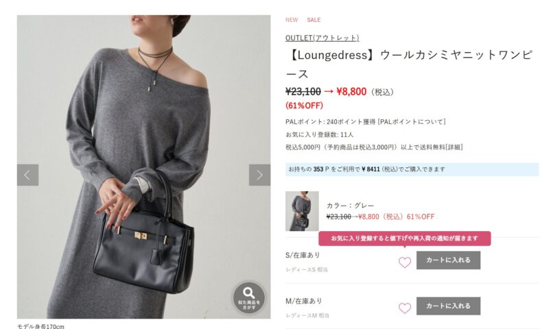 今見たら新しいの発見。ウールカシミアニットワンピ6割引。