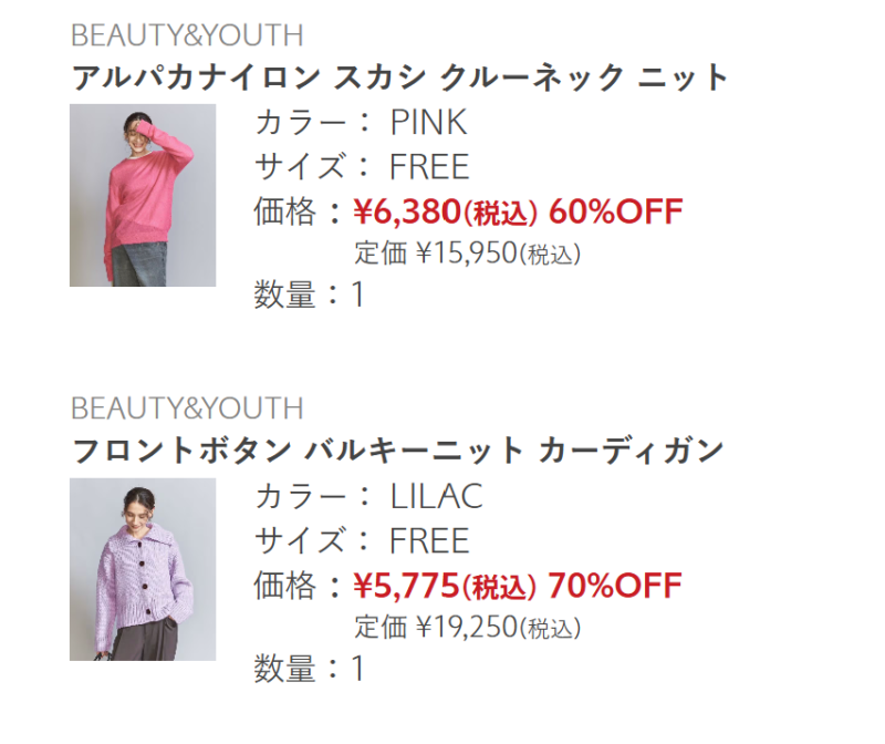 潔い割引。アウトレット頁は宝の山。見つけた瞬間、躊躇せずポチポチ出来る金額。こういうカラフルなニットって何枚あっても良い。毎日色違いでニットを着るの楽しすぎる!
