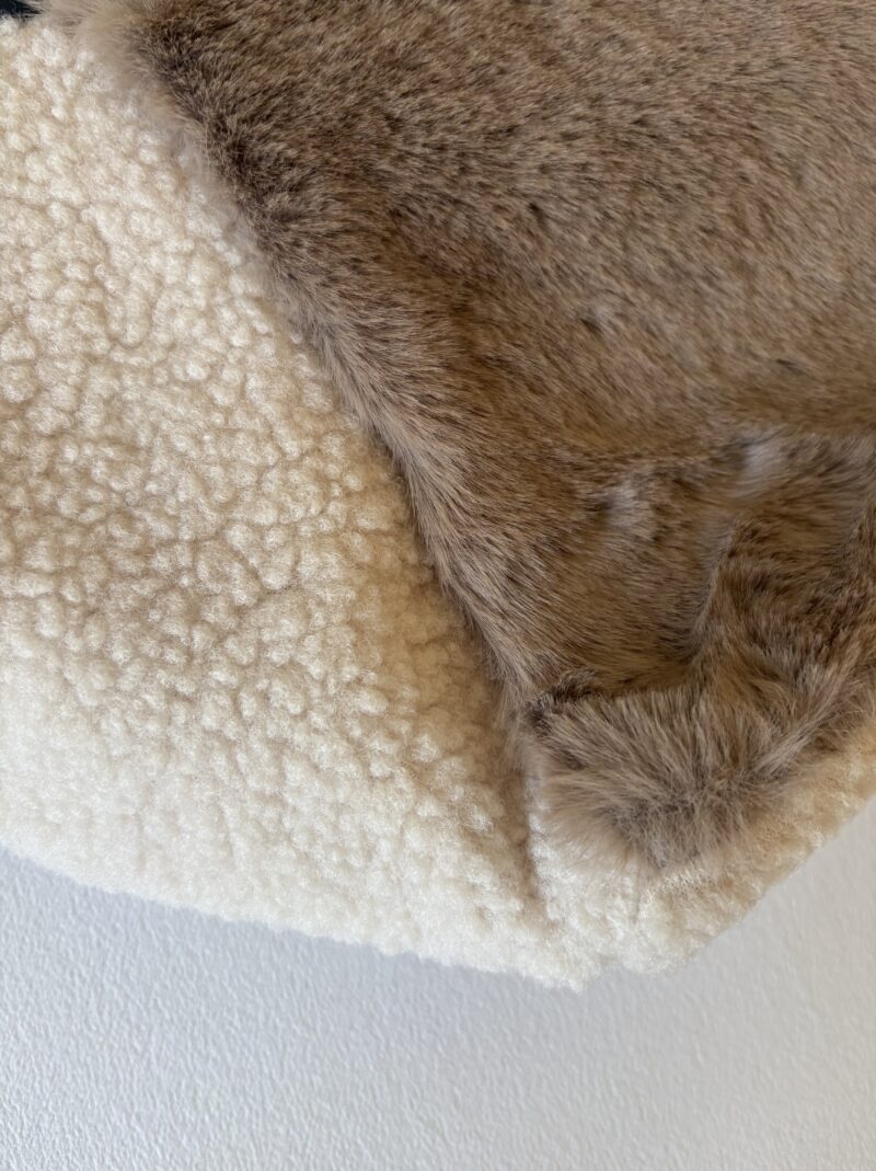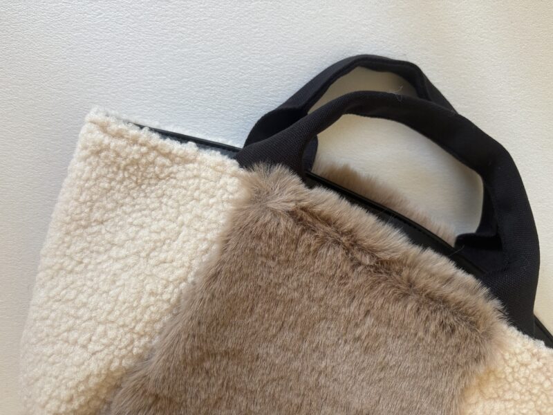 柔らかくホワホワな生地。ボアとエコファーの組み合わせがニクイ。黒もあるけど、断然アイボリーがカワユスかと。