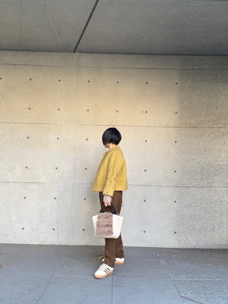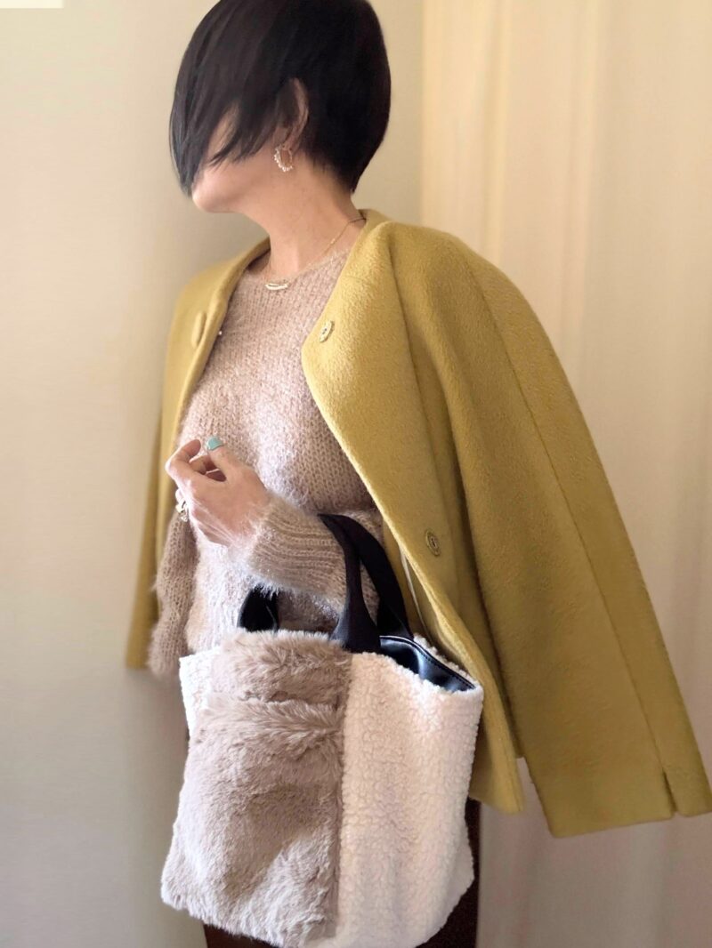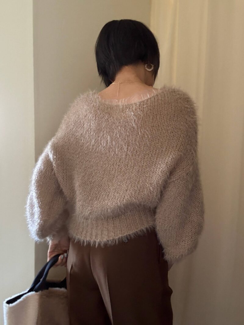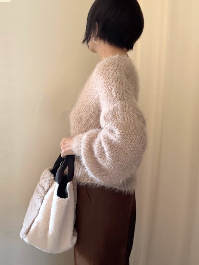 このbagに合わせてフワフワ系のショートニットで。