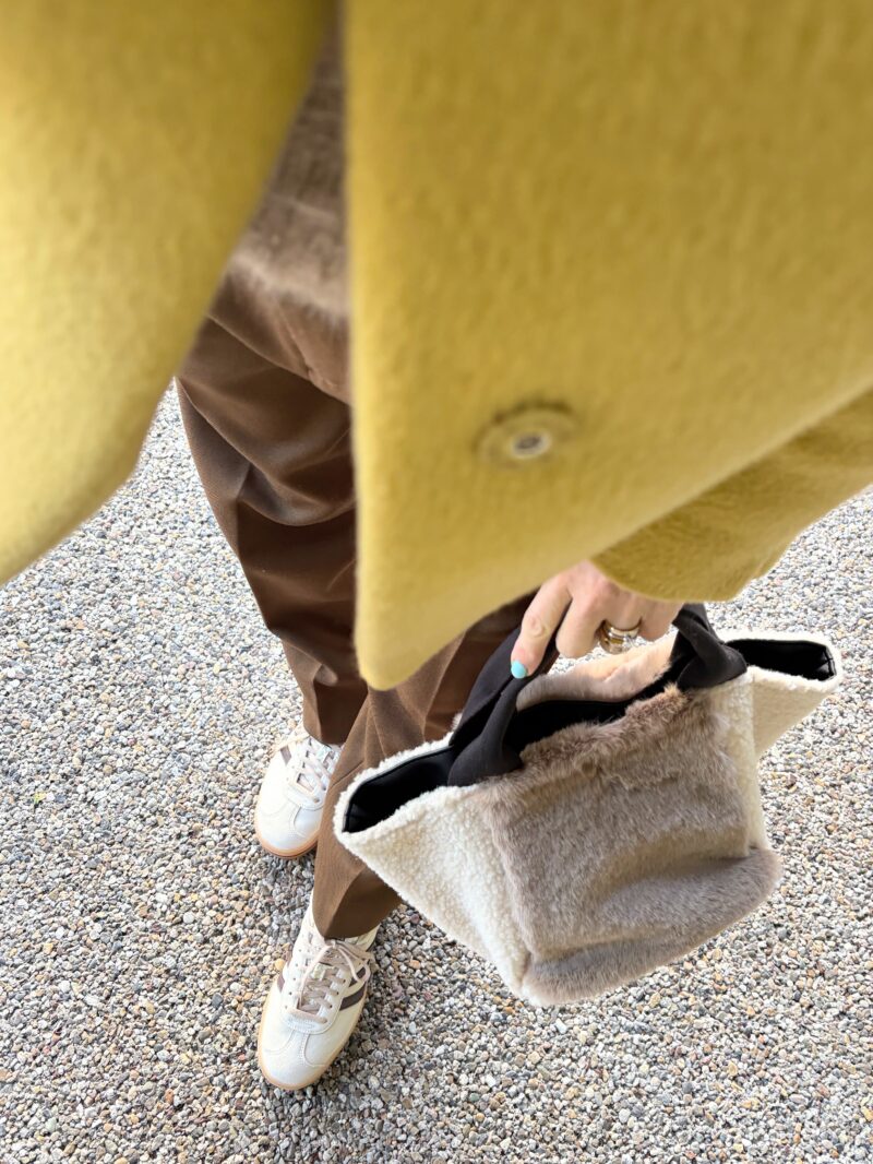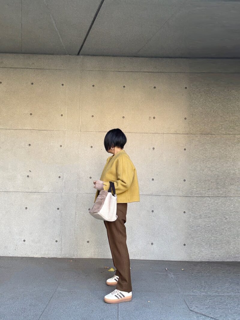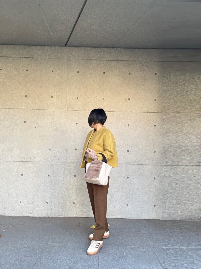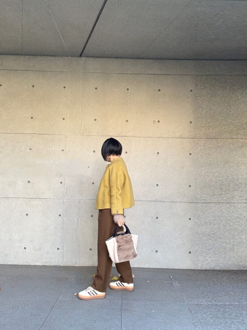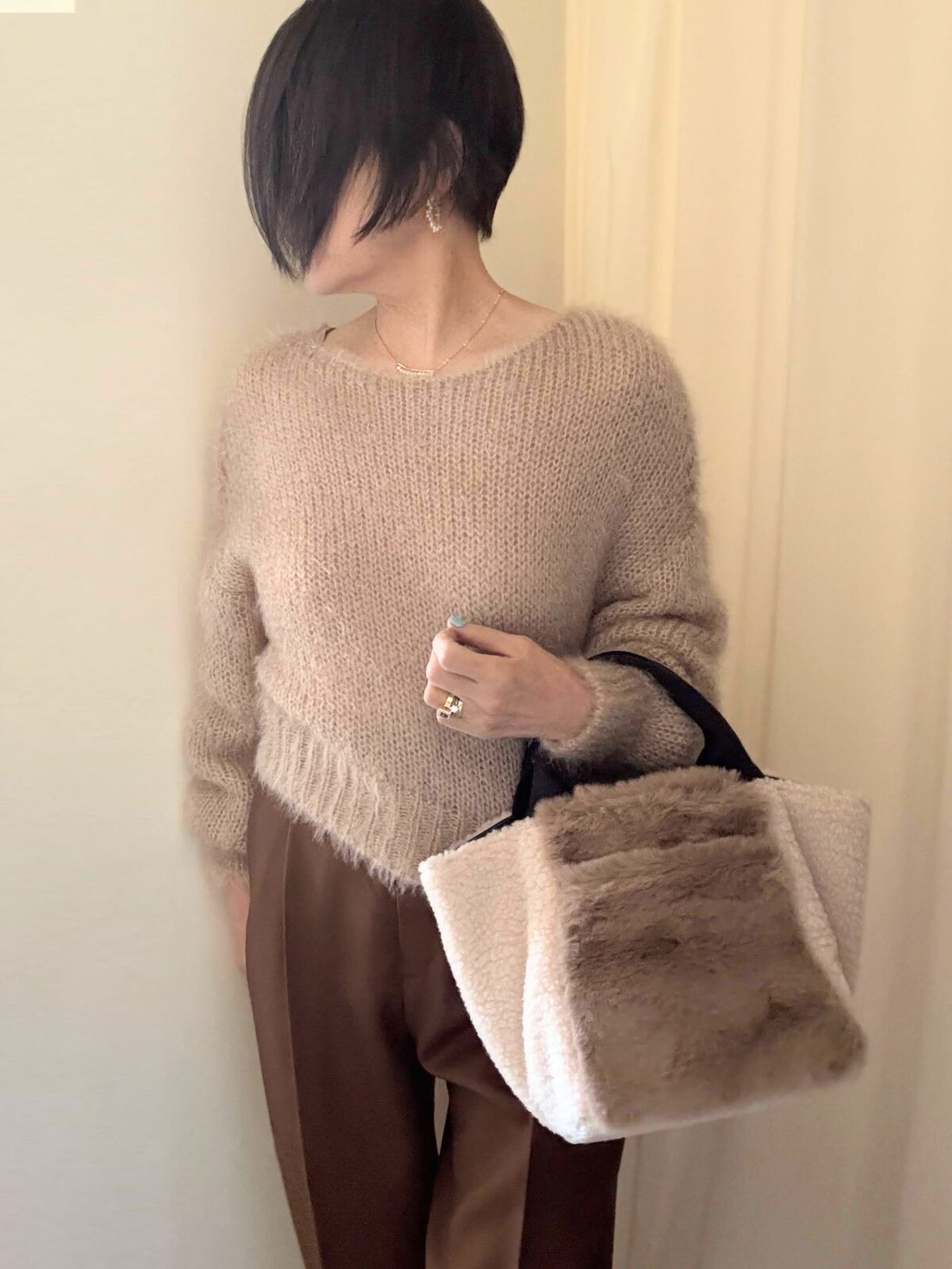 このbagに合わせてフワフワ系のショートニットで。