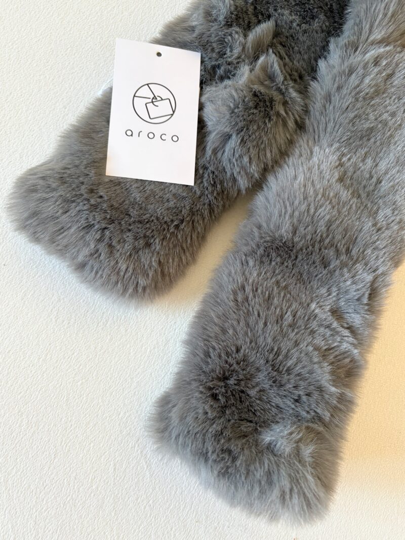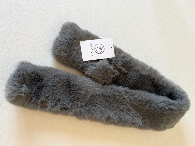 フワフワで肌触り最高。癒されるエコファーのマフラー。間に通す穴(切れ目?)があるのでスッと負ける。ほどけにくい。