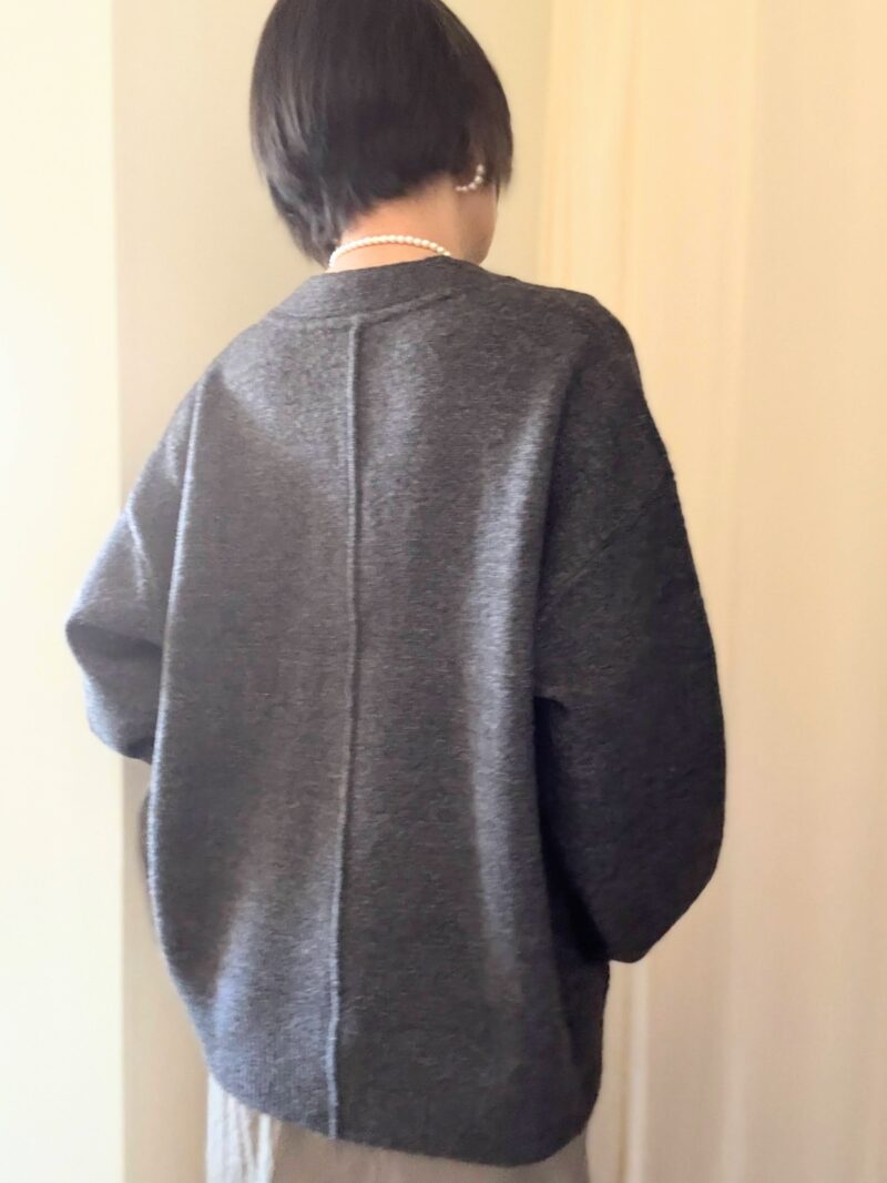 ザクっと一枚着るのにちょうどいいゆとりのニット。糸がMIX糸なのでベタ感が無くてグー。