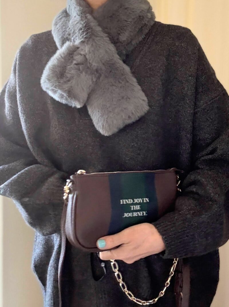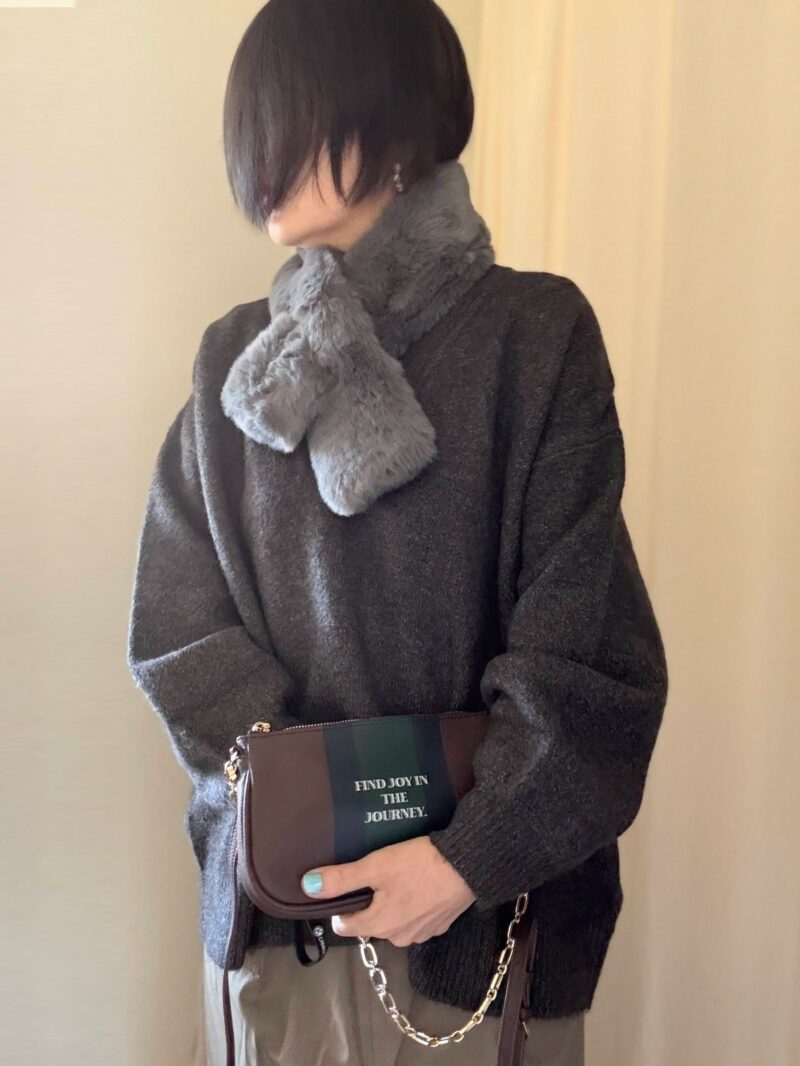 胸元寒いかも・・・と思ってエコファーのマフラーを。ニットと色合わせ。