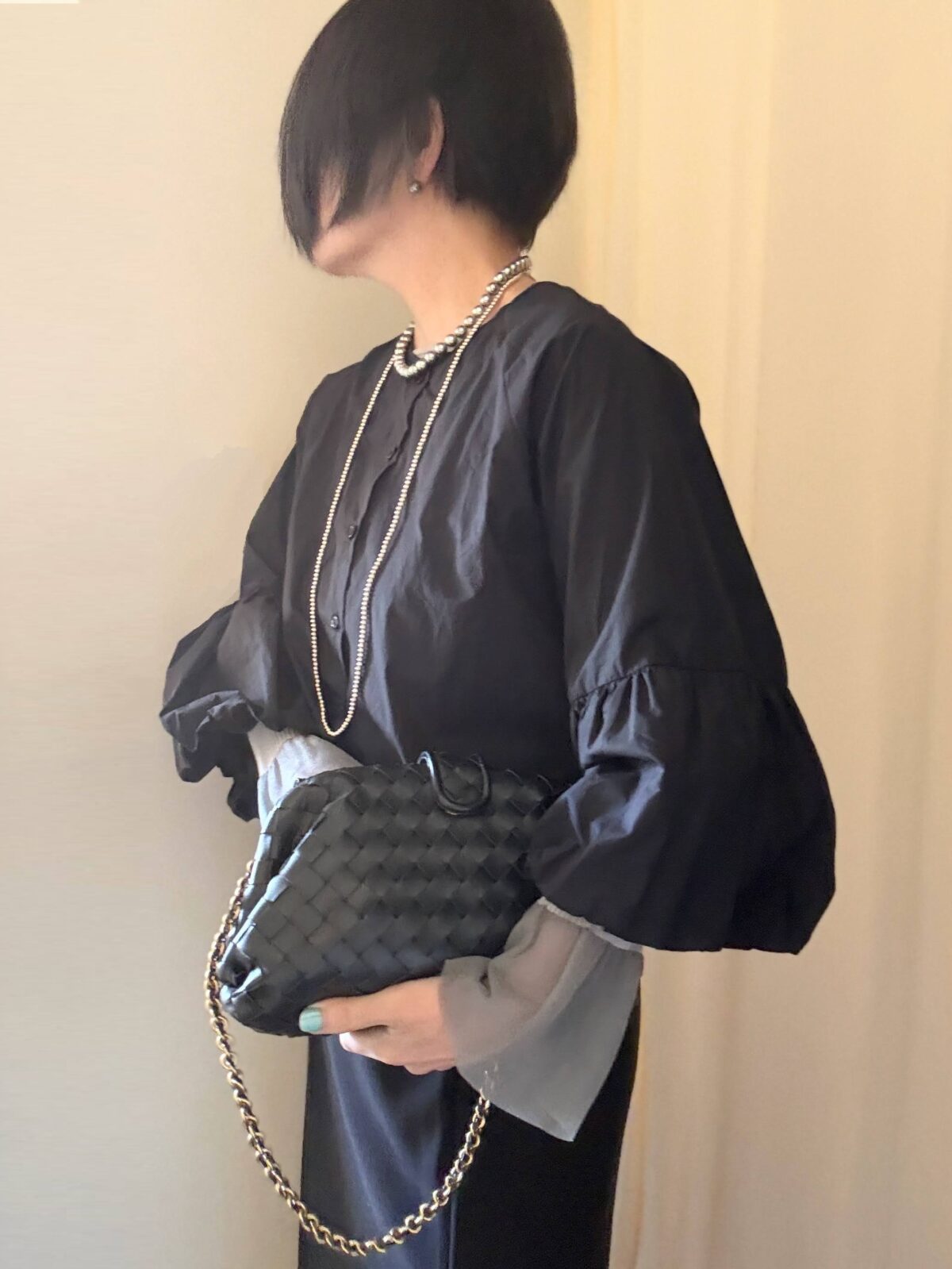 この大げさなポワン袖、盛れる。黒でも寂しくならないので気に入っている。