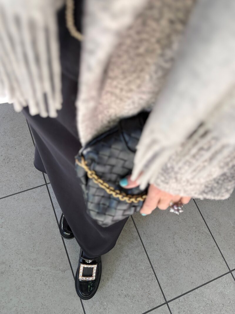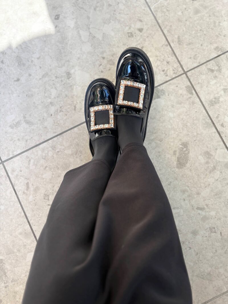 足元。今日はちょっと靴を脱いだり履いたり×数回の用事があったので、ブーツを避けた。スニーカーもメンドクサイですね。そんな日はローファ一択。キラキラなローファで気分up。