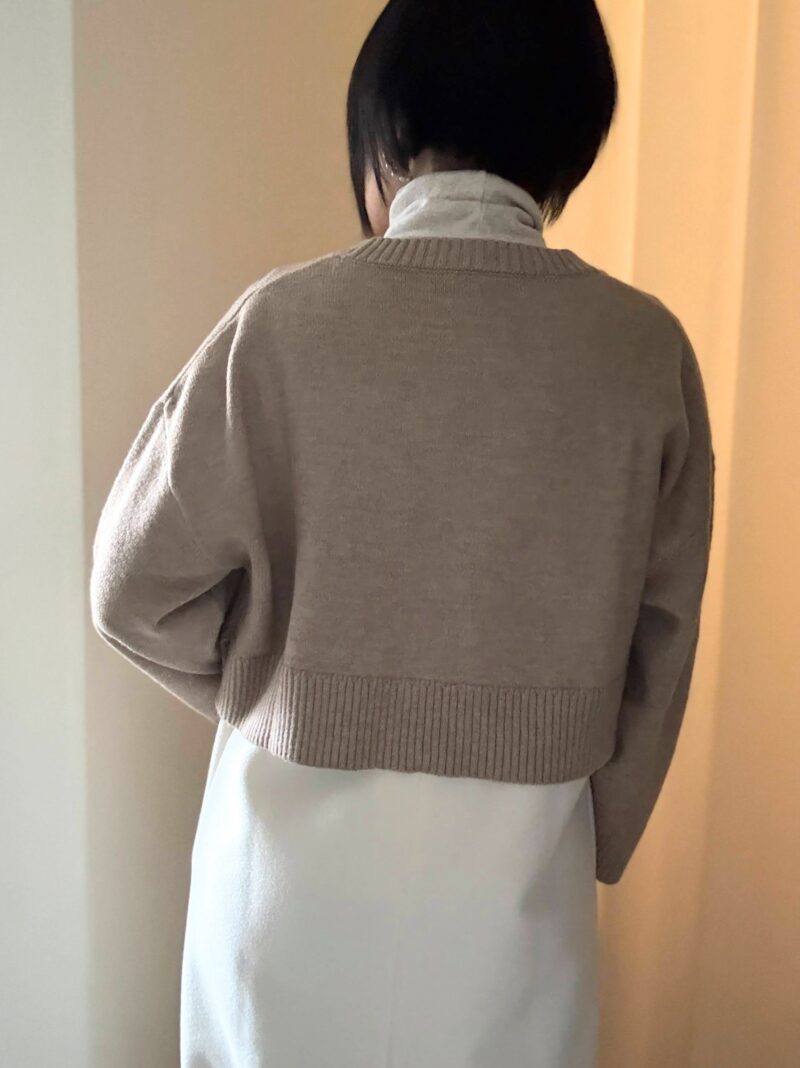 このベージュのショート丈ニット、フワッとしたシルエットが気に入っているのだけど、