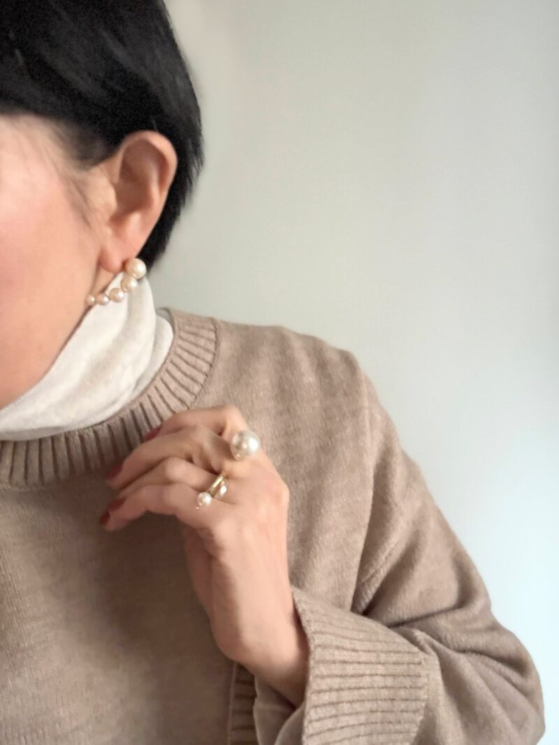 このカーヴしているパールのピアス、お気に入り。存在感ある。