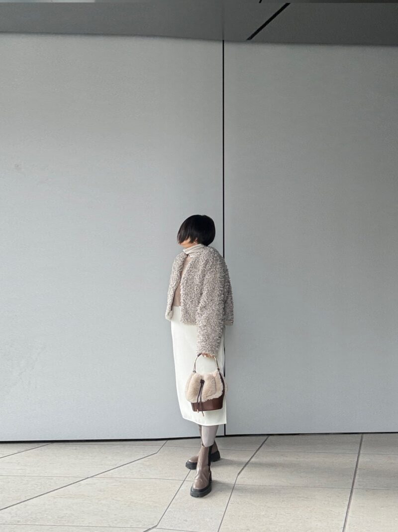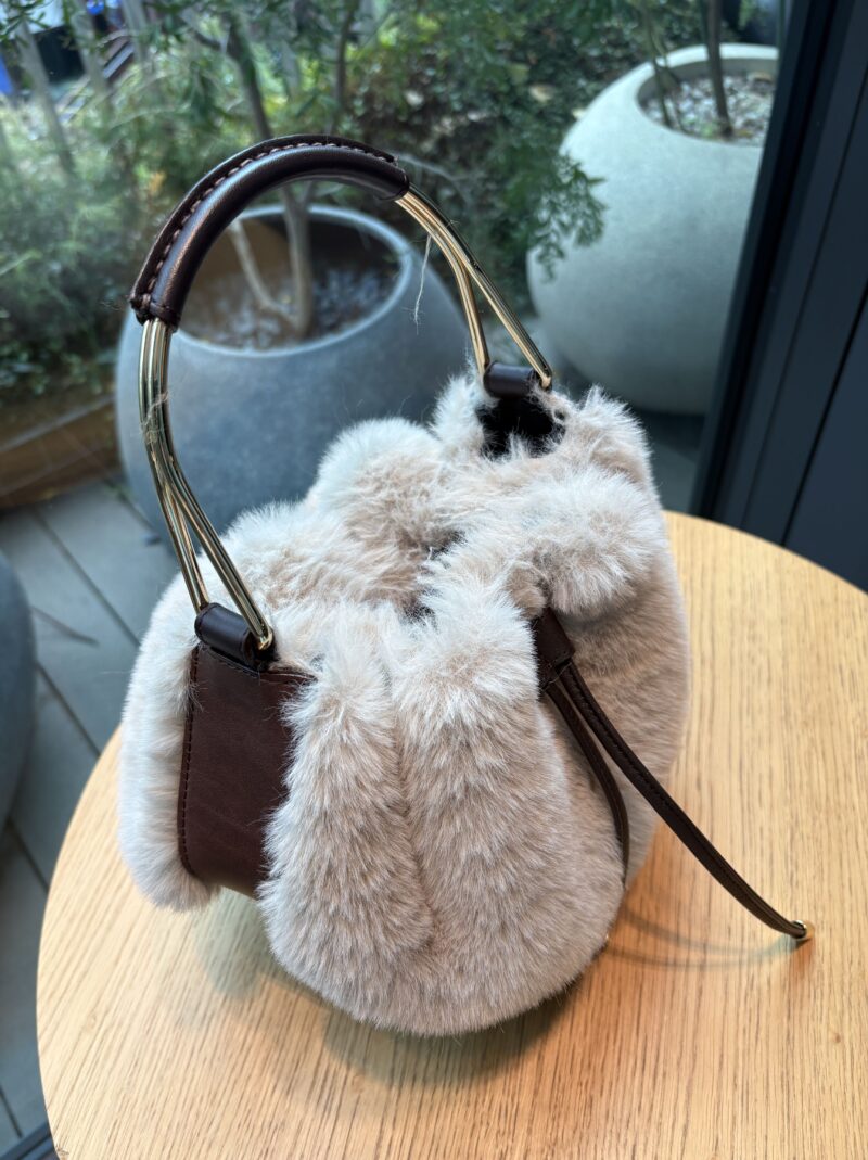 バッグは持ってるといつも褒められるヴィオラドーロのもの。革×ファー。