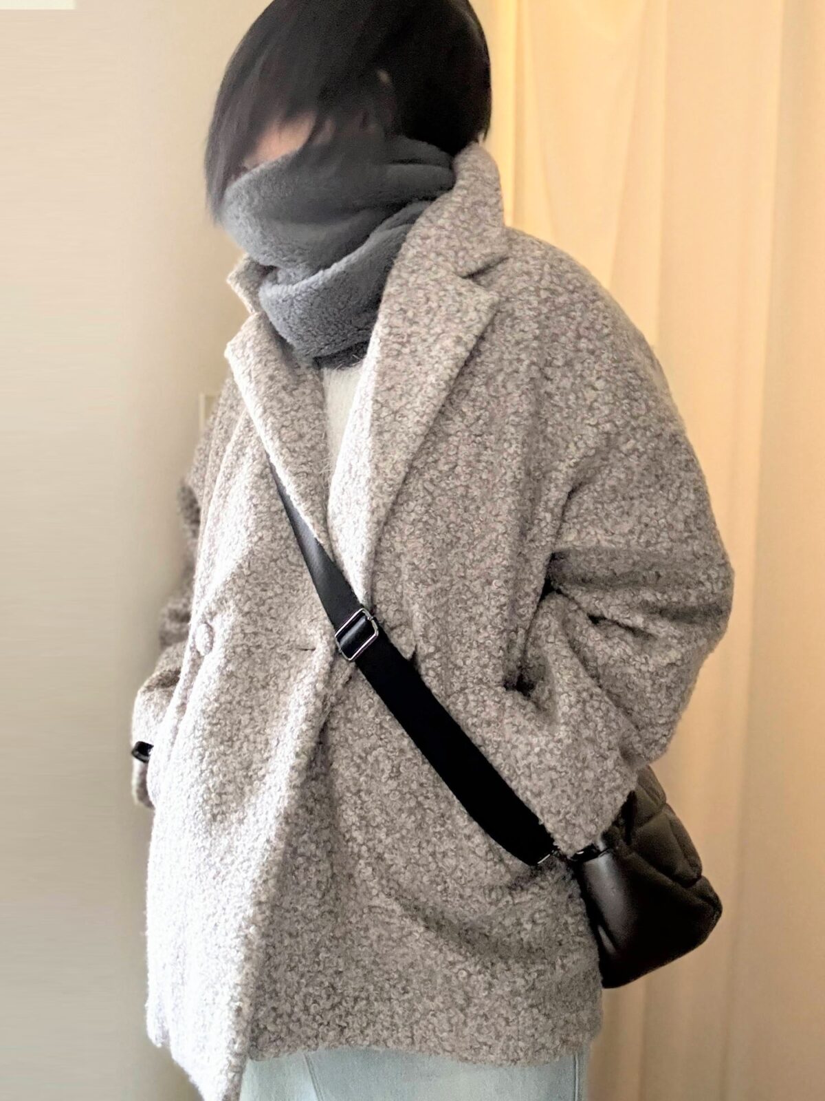 極寒の日はこれにさらに肩も覆うカシミアストール巻くと最強です!