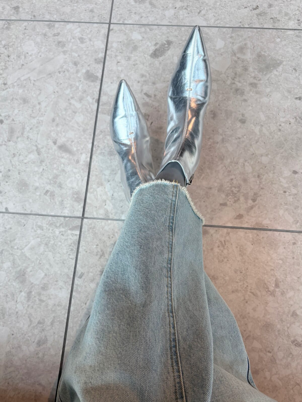 足元。シルバーブーツ。