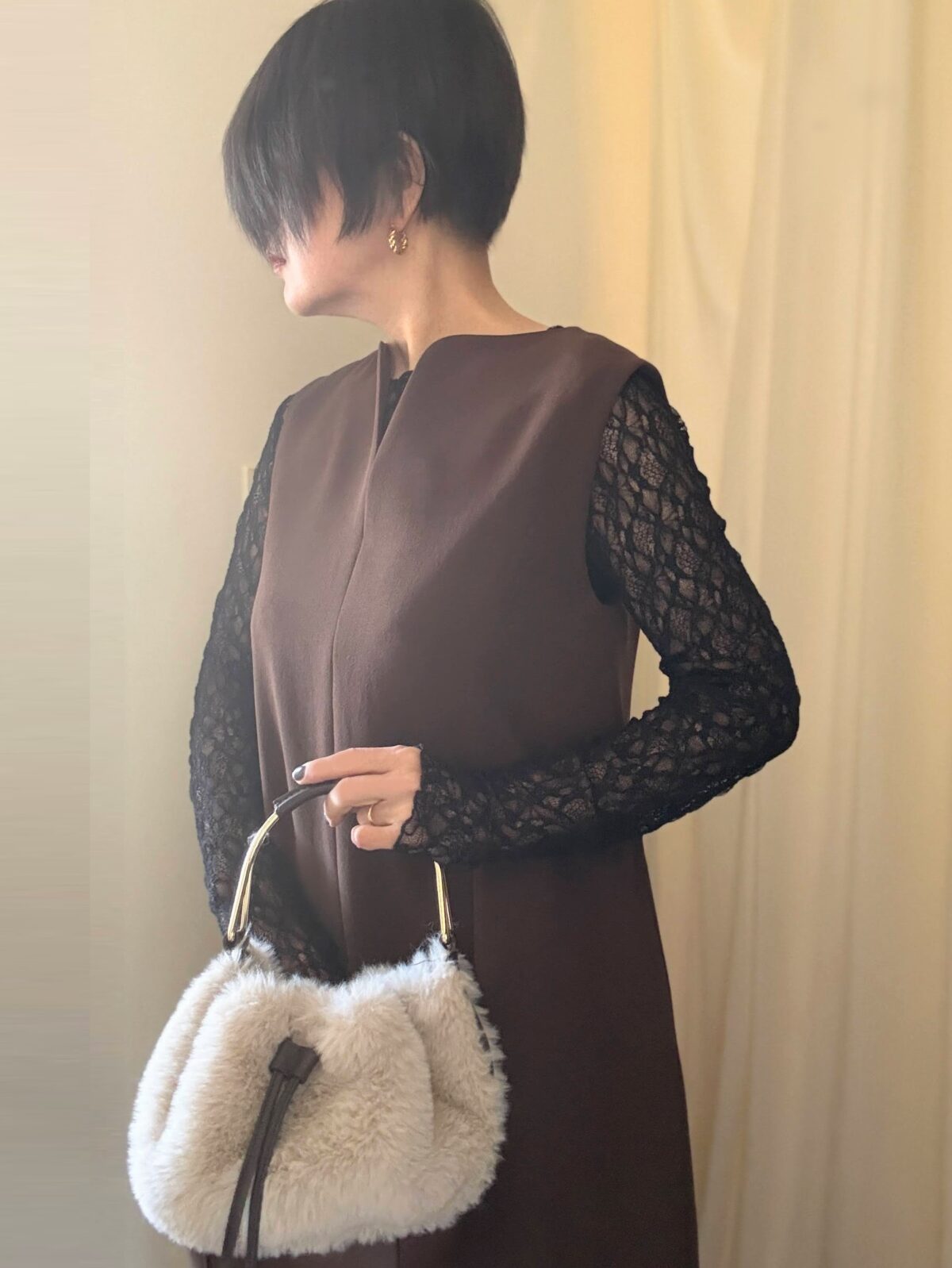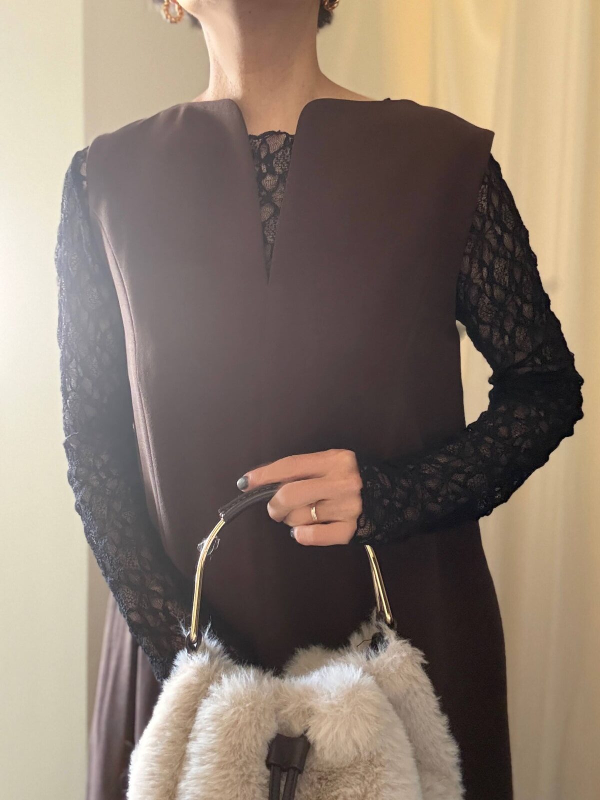 ワンピースなのでインナーに一工夫。普通のロンTでもいいんだけど、クラシックコンサートということで、レース編みのロンTにした。
