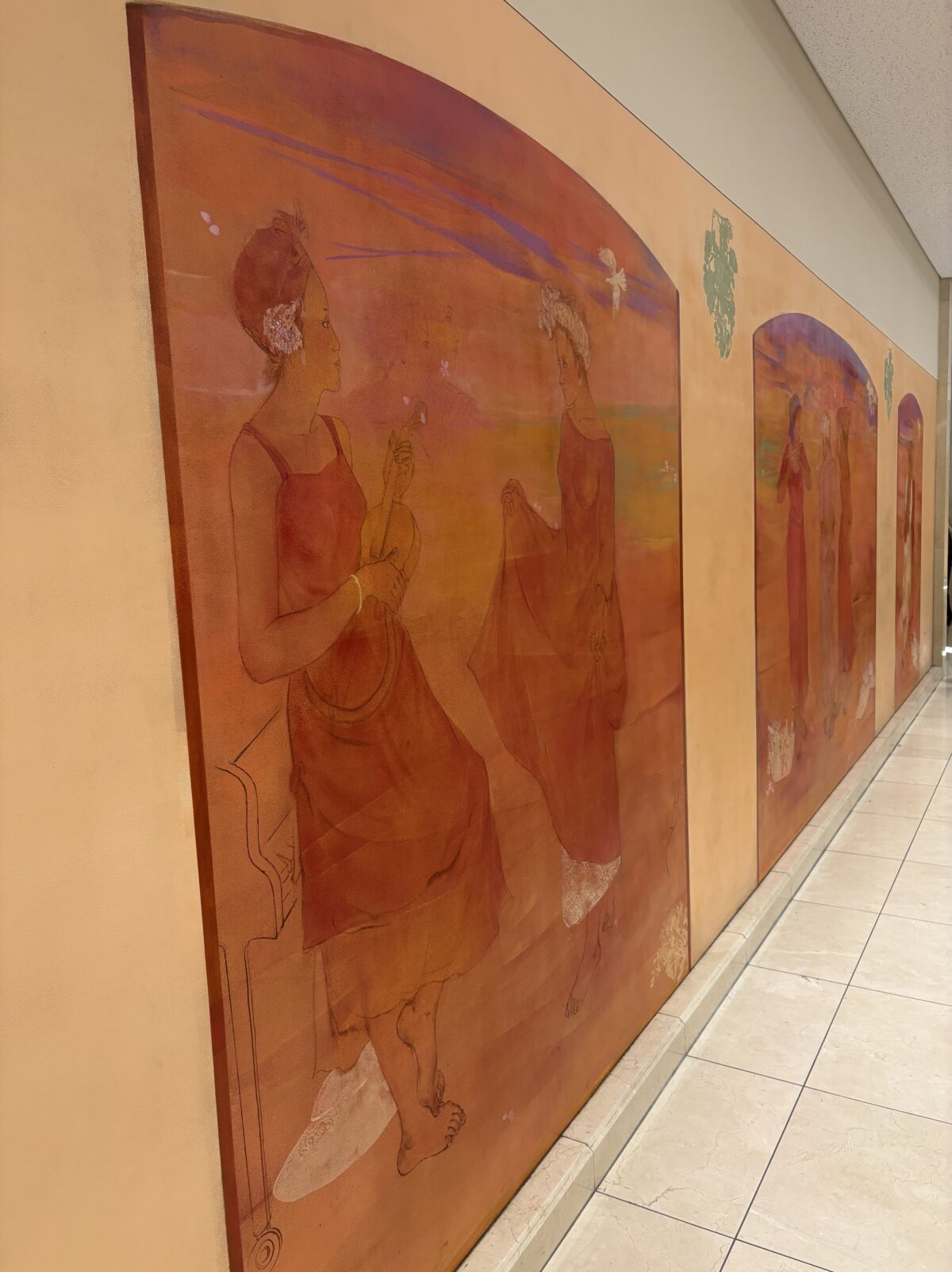 コンサートホール内、朱赤が効いてる内装。偶然今日のコーデとマッチしたんじゃない?朱赤のカシミアストール持って行ったの正解。