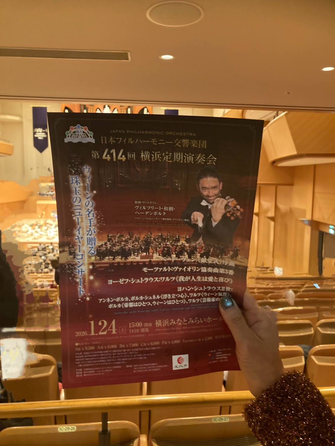 会場内、真っ赤なサテンシルクのドレスのマダムやお着物の方もちらほら。華やかなファッションで新年のコンサートを楽しむ方多し。やっぱりコンサートっていいなあ。