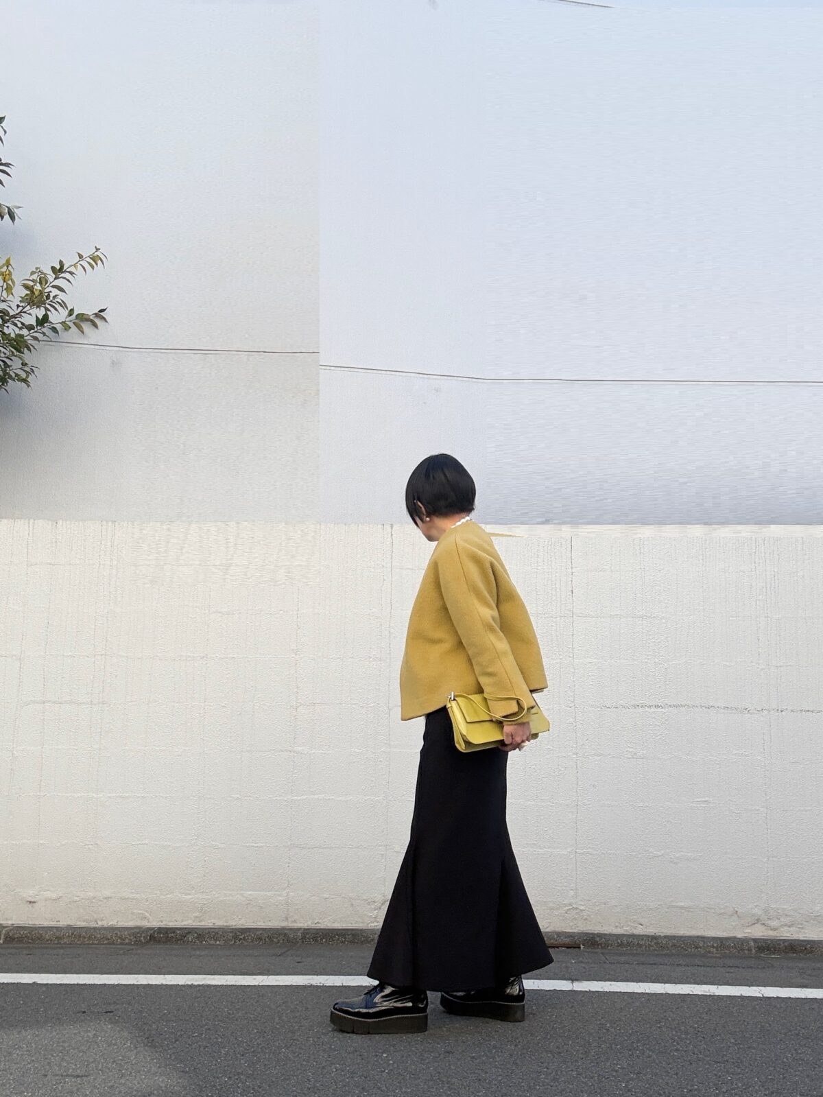 ボトムスは黒で。マーメイドラインの落ち感綺麗な楽スカート。