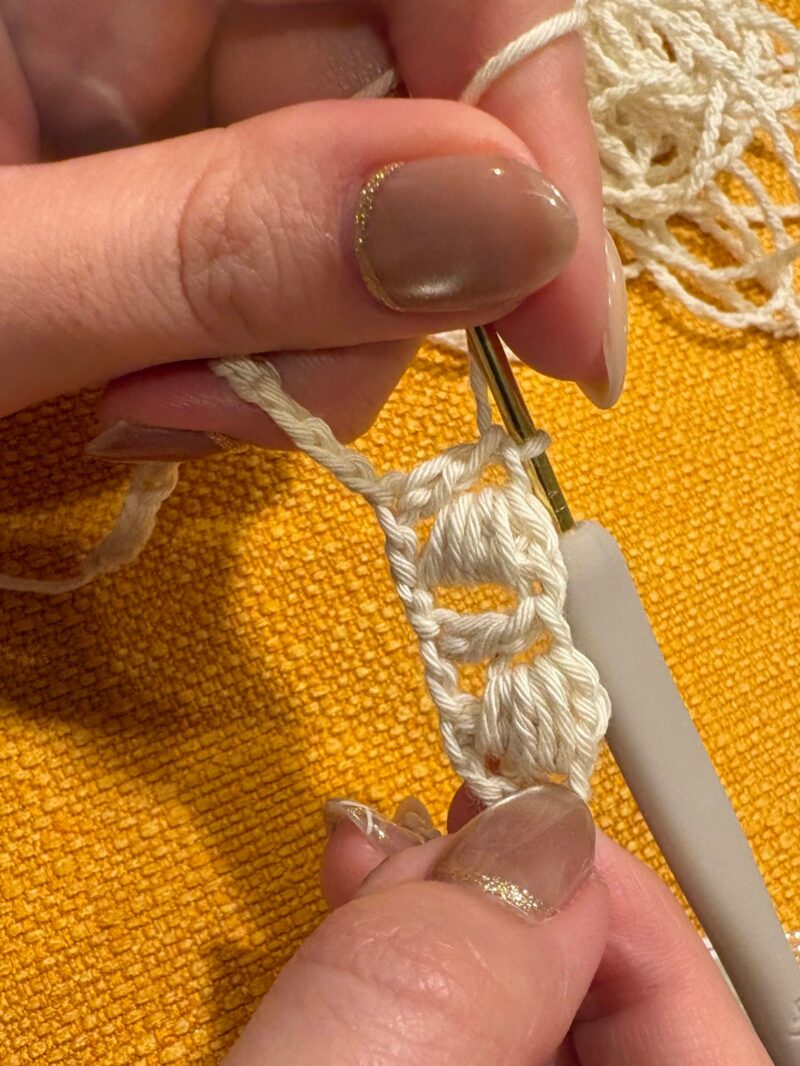 そこで最近棒針の編み物にハマってマフラーや手袋まで編んでいる娘にHELPを頼み来てもらった。娘はあっさりと編み図を読み解き「こんな感じじゃない?」って見本作ってくれた。