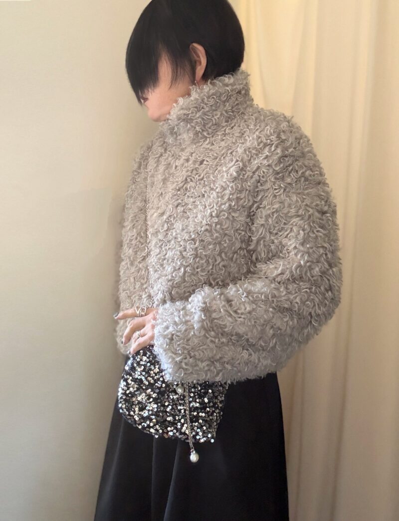 ・カールファーのショートコート:プードルファーショートコート 防寒 防風 軽量 プードルファー