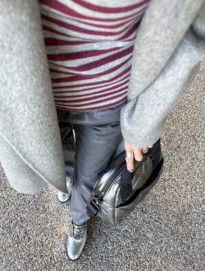 前回のコーデ↓グレーの革パンツ+グレーのロングコート羽織り合わせだった。