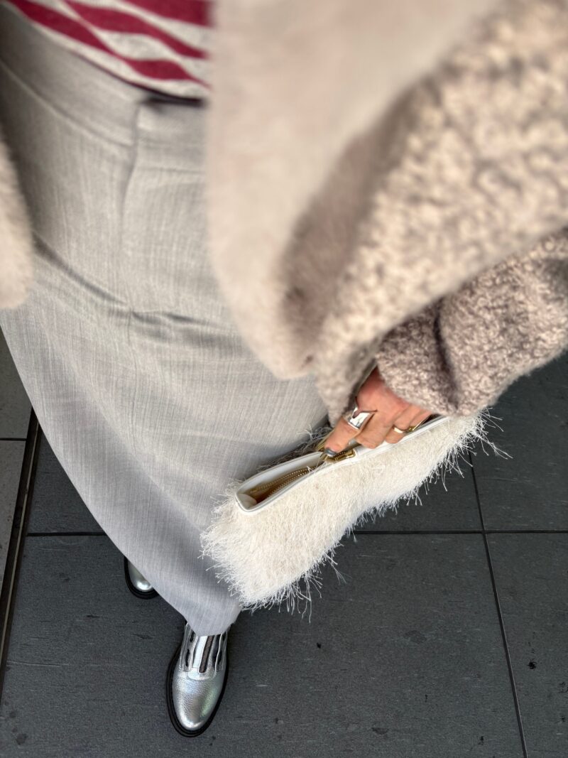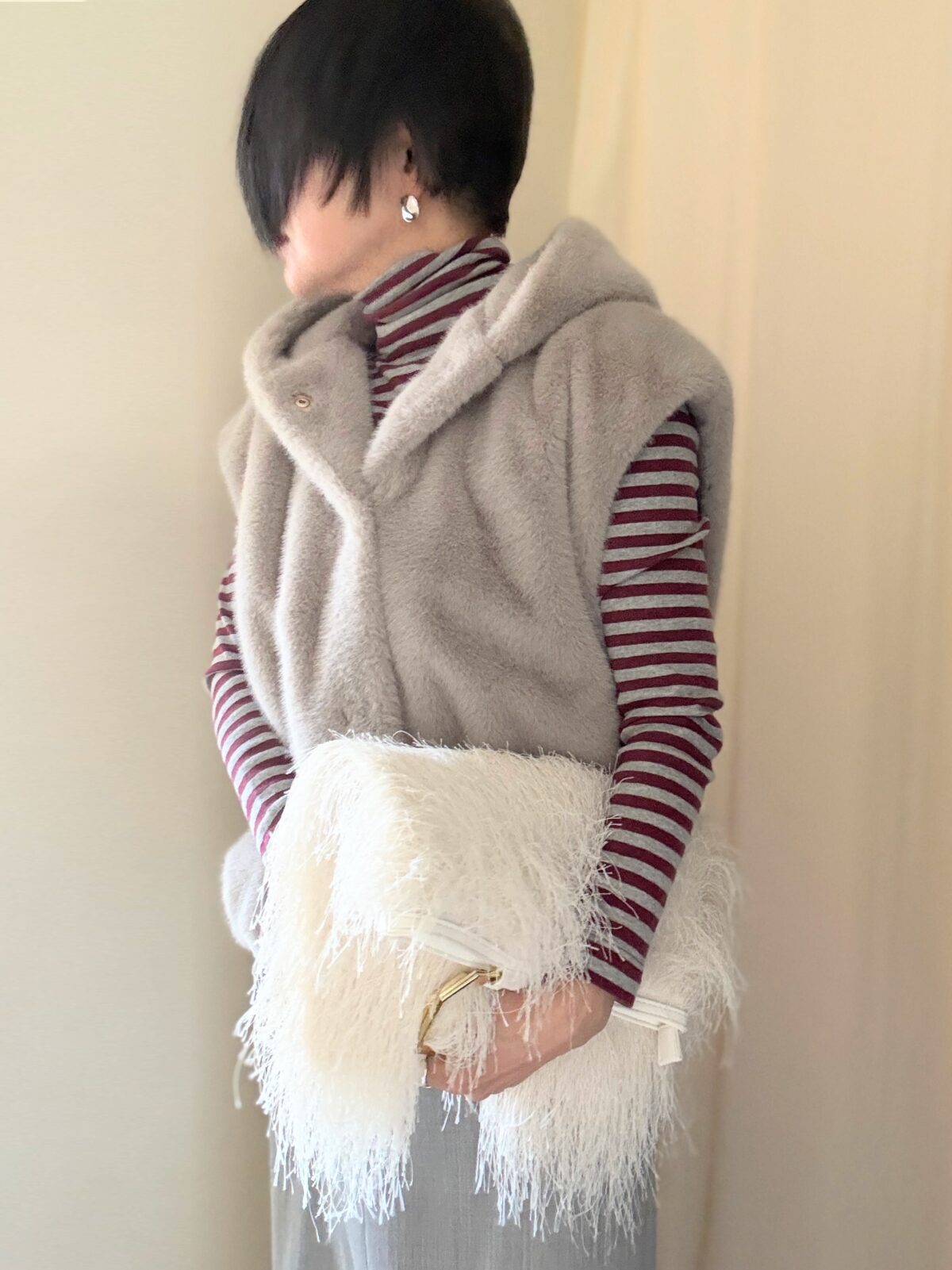 ツッコミ忘れたけど、今日のこのシャギーbag、「あの人、何持ってるんだろう・・」と言われがち。変だよねぇ。どう見ても。変なbagは私の気持ちを上げてくれる。↗。最高!