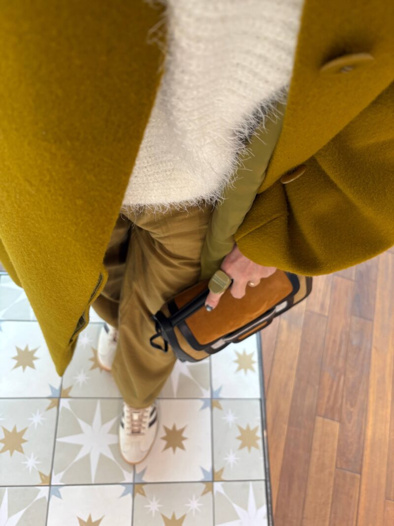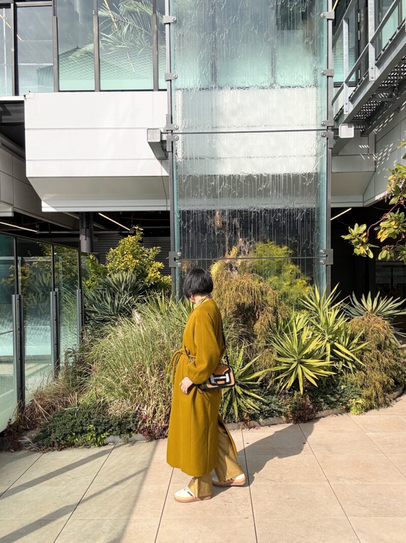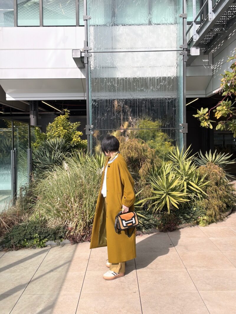 って一瞬後悔したけど、全然いける。合わせやすいどころか、ベージュ系・黄色系・茶系・黄緑系・カーキ系のコーデならほぼ何にでも合う!