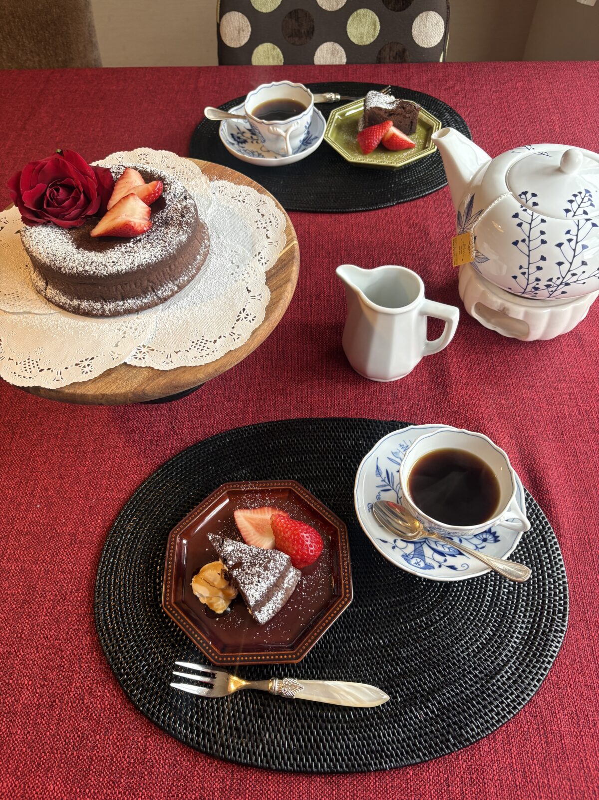 帰宅してお茶タイム。今年のヴァレンタインはガトーショコラを焼いた。(世の中の高級なトリュフ系のチョコにあまり興味ない私・・・)「焼き菓子」となるとがぜん好き。