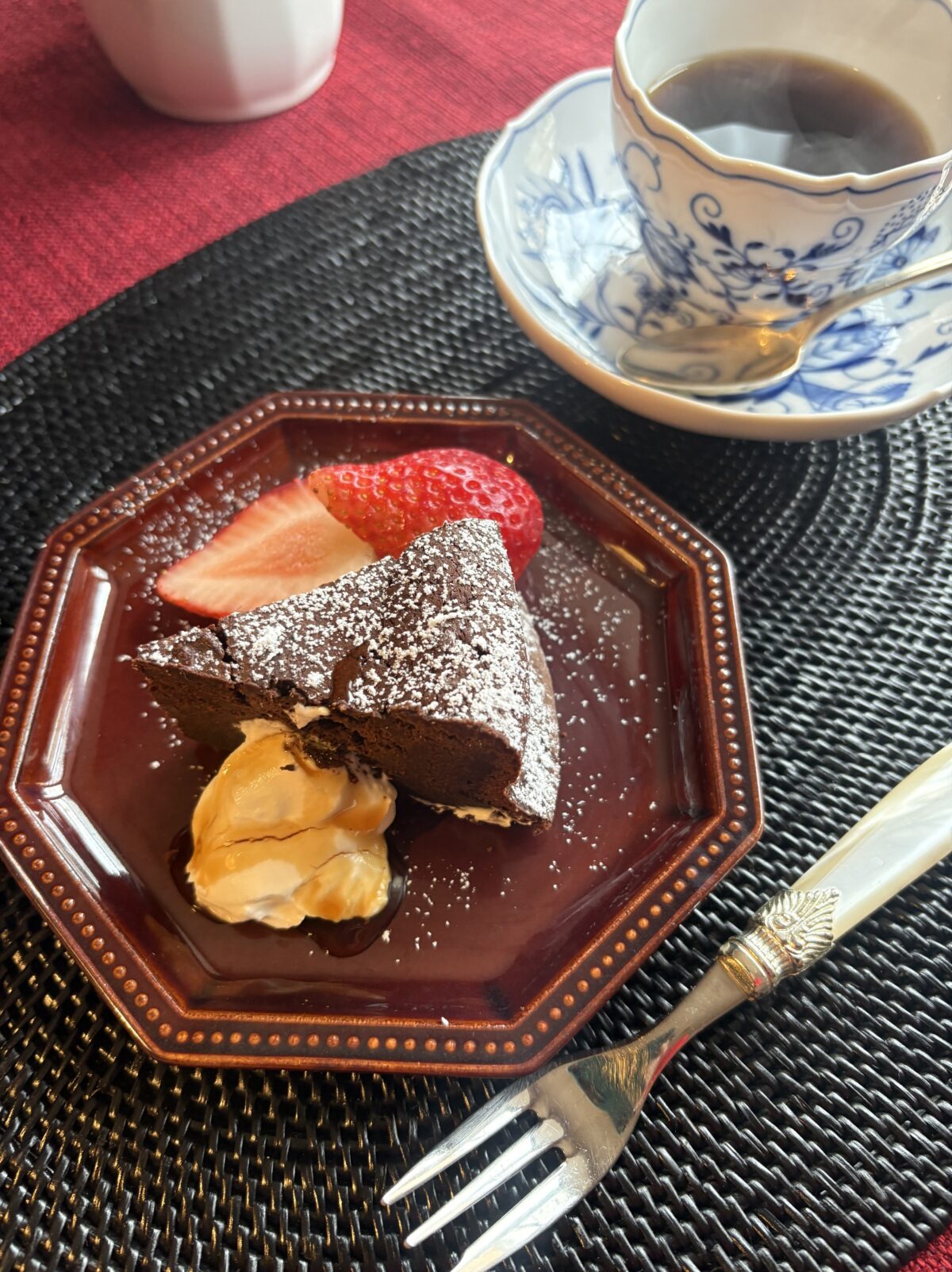ガトーショコラって、よく生クリームが泡立てて添えてあるじゃないですか?あれ、またそのために泡立てるの超面倒なので今年はマスカルポーネチーズをポテッと添えてみた。