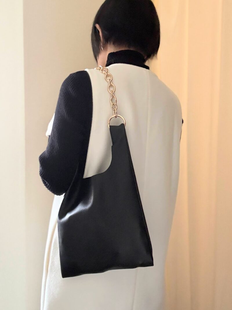 背景が白いので黒い革のbagが映えた。