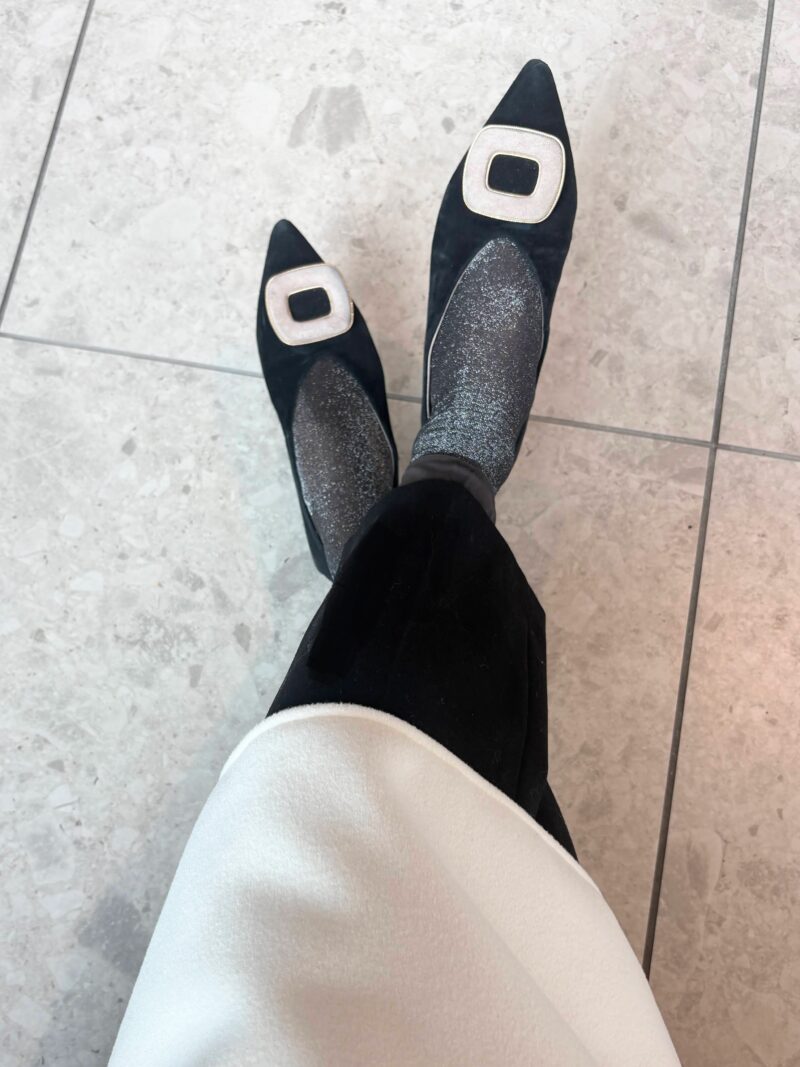 足元。ラメソックスで盛りを入れた。ブーツ飽きてフラットシューズで。