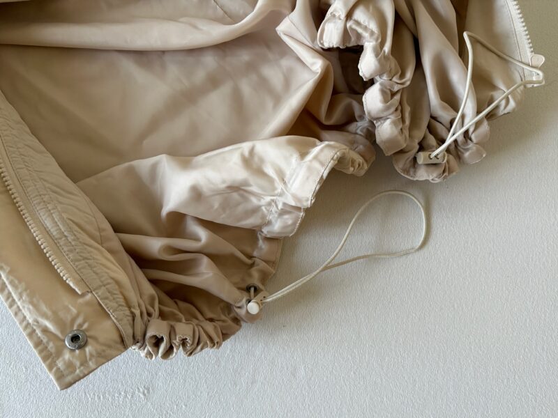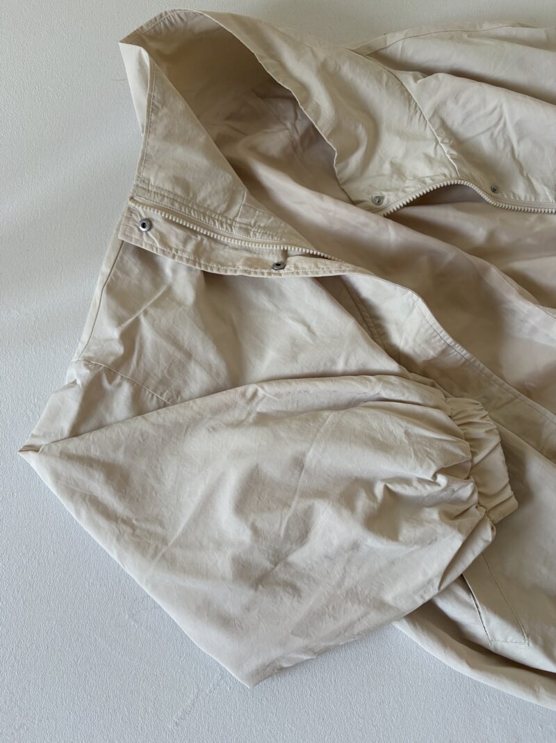 何と言ってもこの裾のドロストが優秀!伸ばせば丈が長めになるし、キュッと絞れば丈を短めにフンワリさせられる。シルエットを自分の想い通りに作りこめる。
