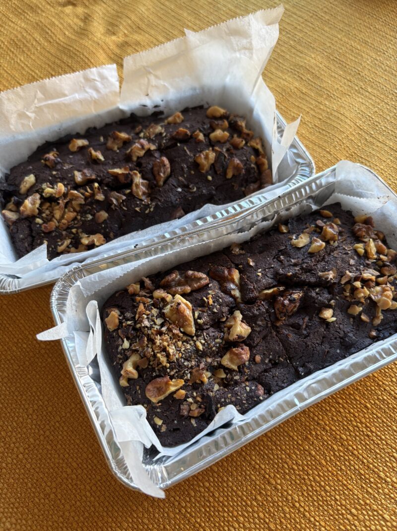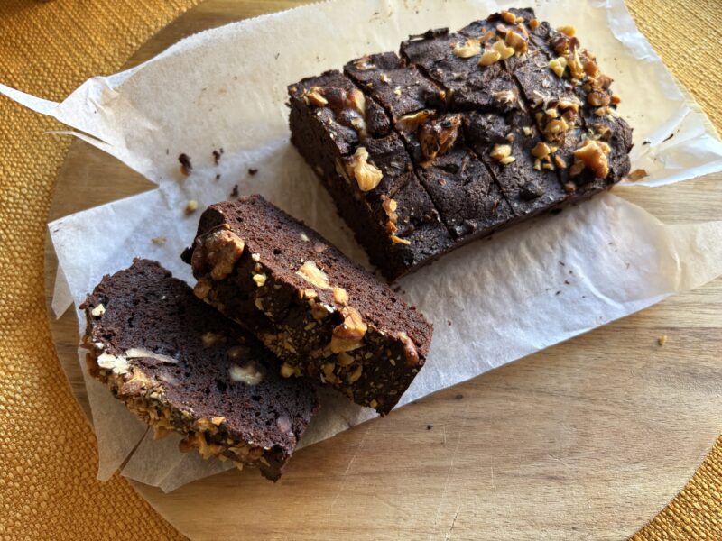 くるみを大量に入れて米粉でグルテンフリーに。もちろん砂糖のかわりにラカントで低糖質。(チョコに砂糖が入ってるけど)