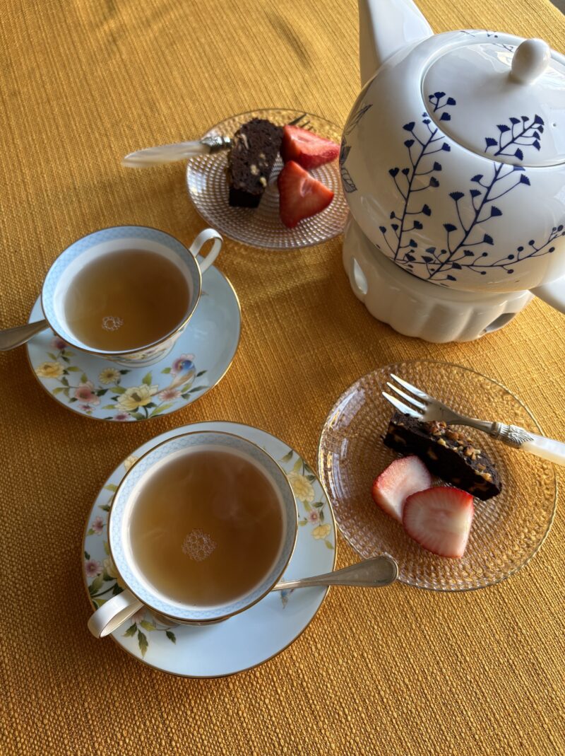 このティーカップで家お茶したい!と思い、家にある材料でチョコレートブラウニーを焼いてみた。バレンタインの時の製菓用チョコがちょうど100g残っていたので。
