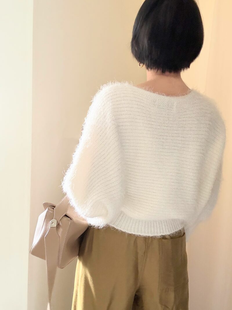・白いモヘアニット:【MIA/ミア】シャギードルマンニットPO/ニット
