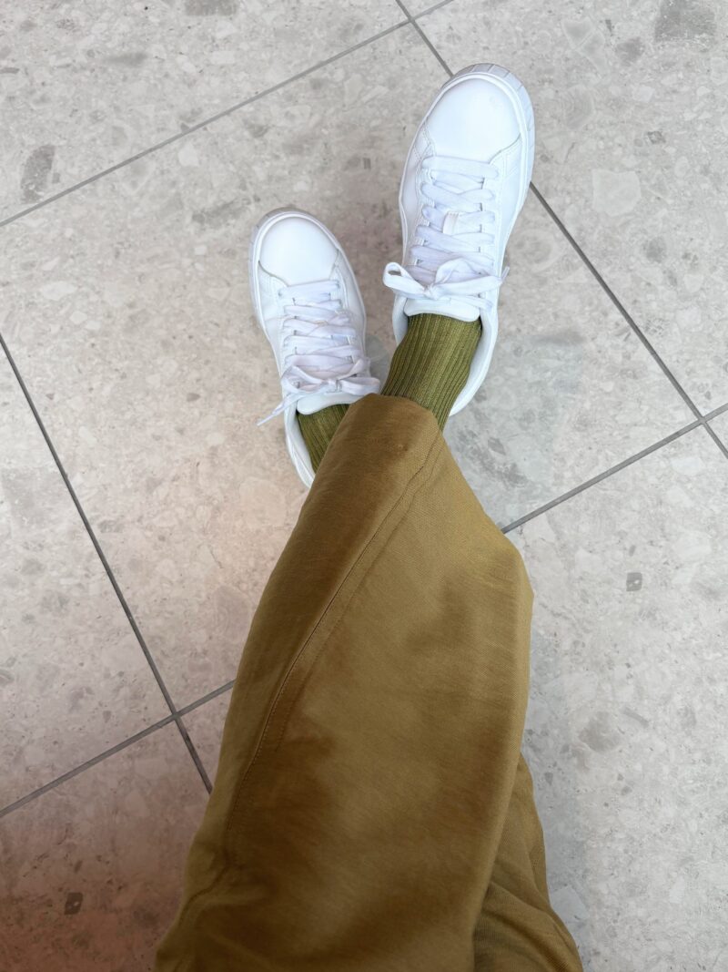 フフフ。(*’▽’) この抹茶色のソックスはハイソックスよっ。タイツやストッキングを履きたくないパンツスタイルの日は絶対ハイソックス!!