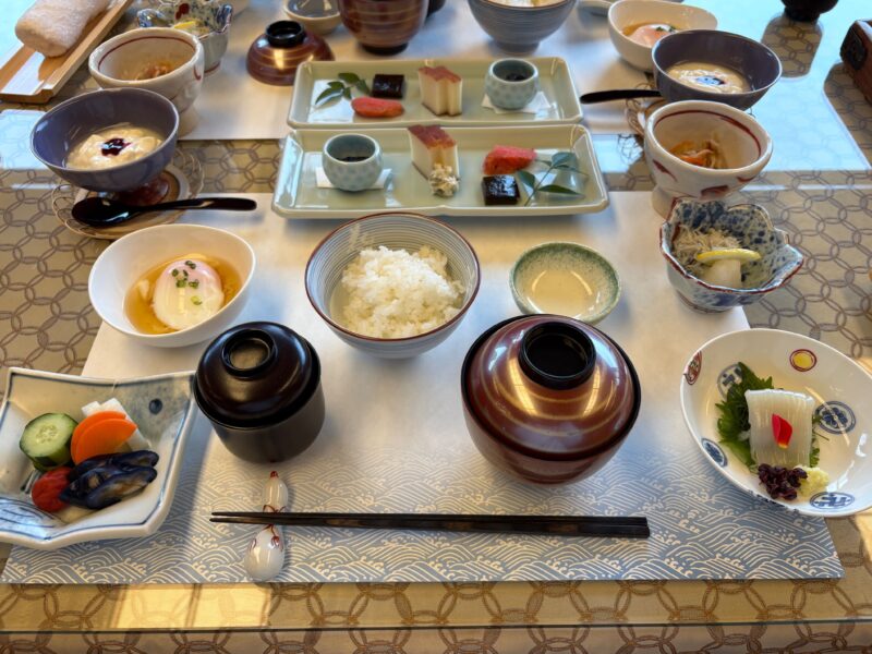 朝は熱々の一番出汁が飲み物としてまず提供される。これまた感動の朝食を頂く。