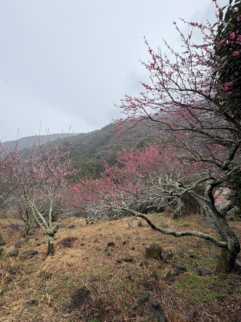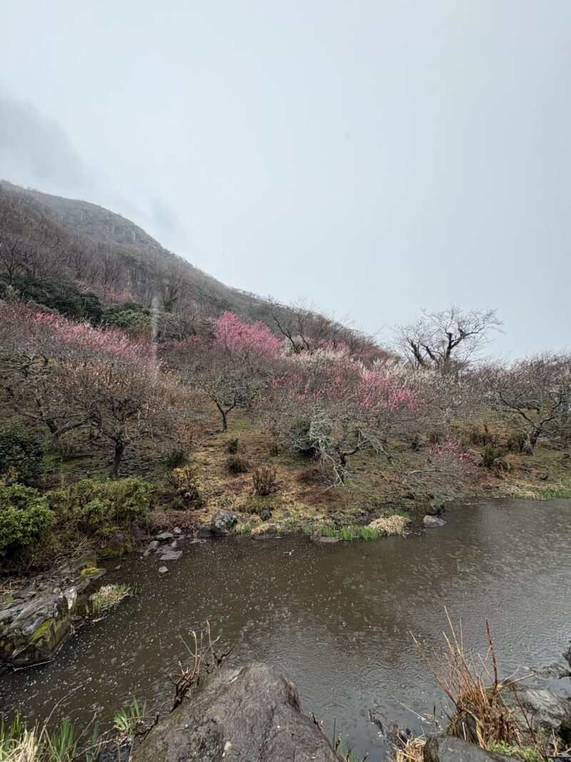 あいにくの雨模様だったけど、そのせいかほとんど人が居なかった湯河原の梅林。