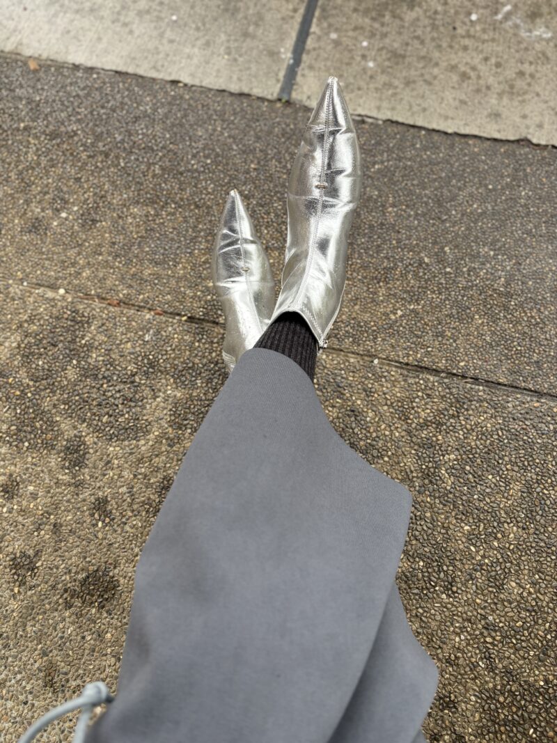 この銀のブーツね、軽くて柔らかくて。エコレザー=ビニールなのでほぼ長ぐつ状態。雨の日でも快適に歩けた。中途半端にスニーカーにするより汚れも全然気にならなくて最適解!