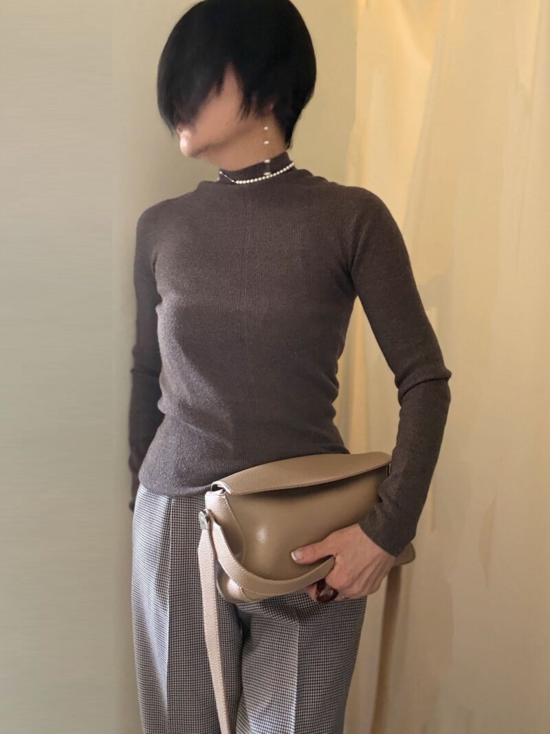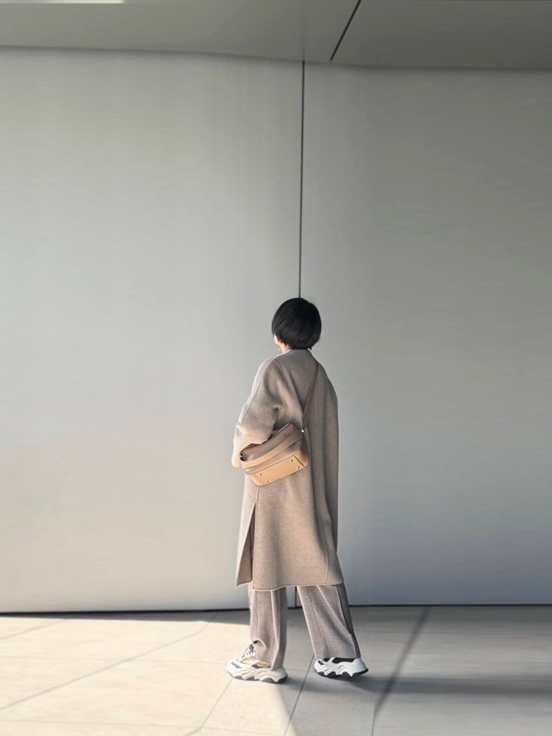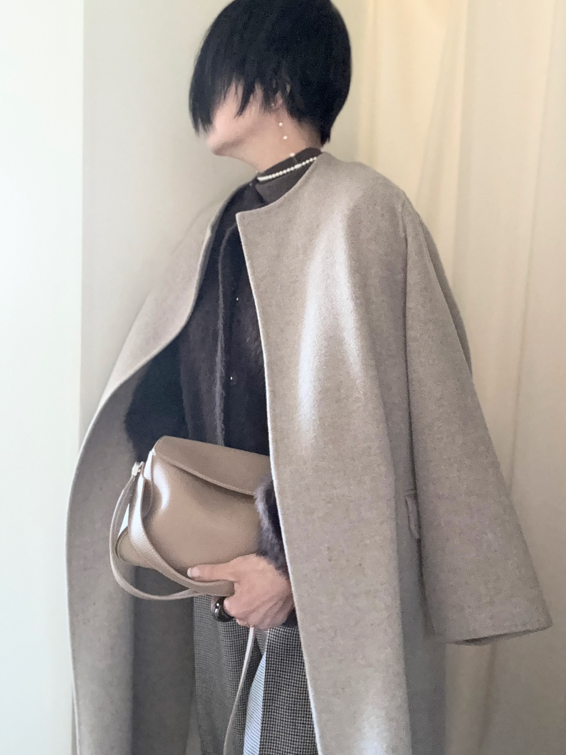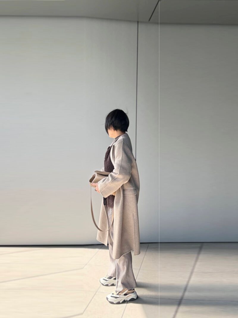 bagは今期、大のお気に入りのZAKKABOXさんの2WAYのベージュで。このバッグ、ベージュの色合いが絶妙で今日のような「チョコパフェ色コーデ」にしっくりなじむ。