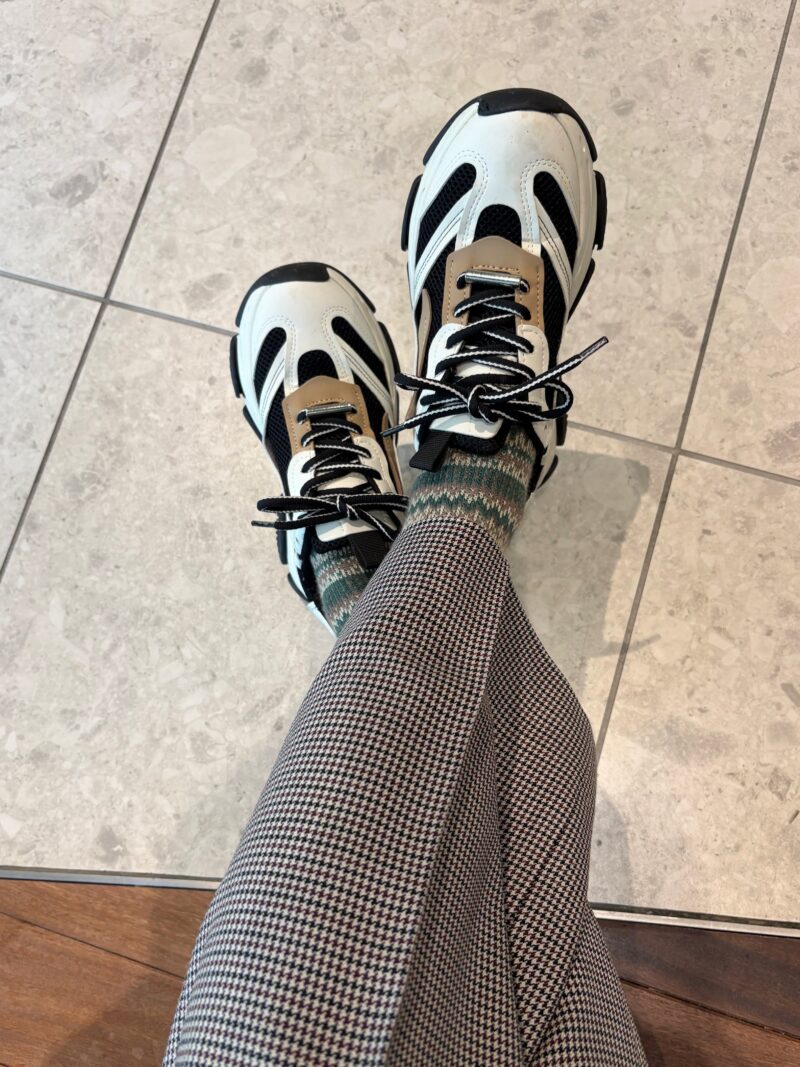 ワイドパンツ+ごつめのスニーカーは引き続きまだまだトレンドのよう。まだ行ける。